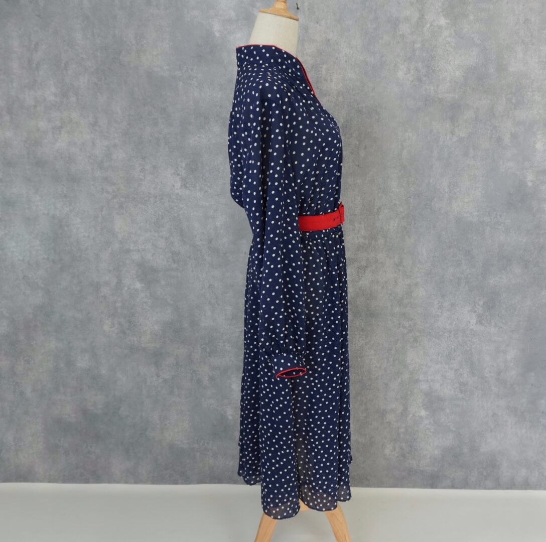 こちらのドット模様のワンピースはシンプルながらも華やかな印象を与える一着です。