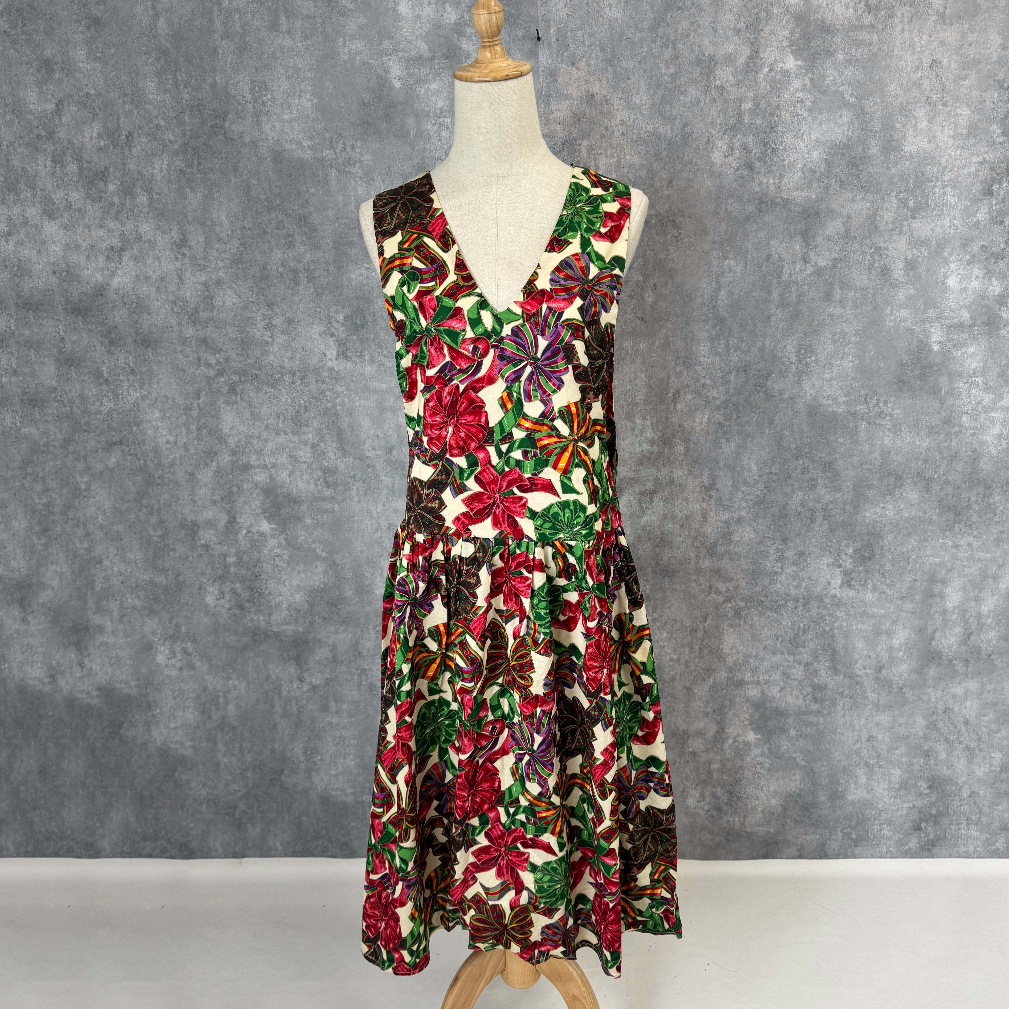 リボン模様 スリーブレスワンピース フレアシルエット 80〜90年代
