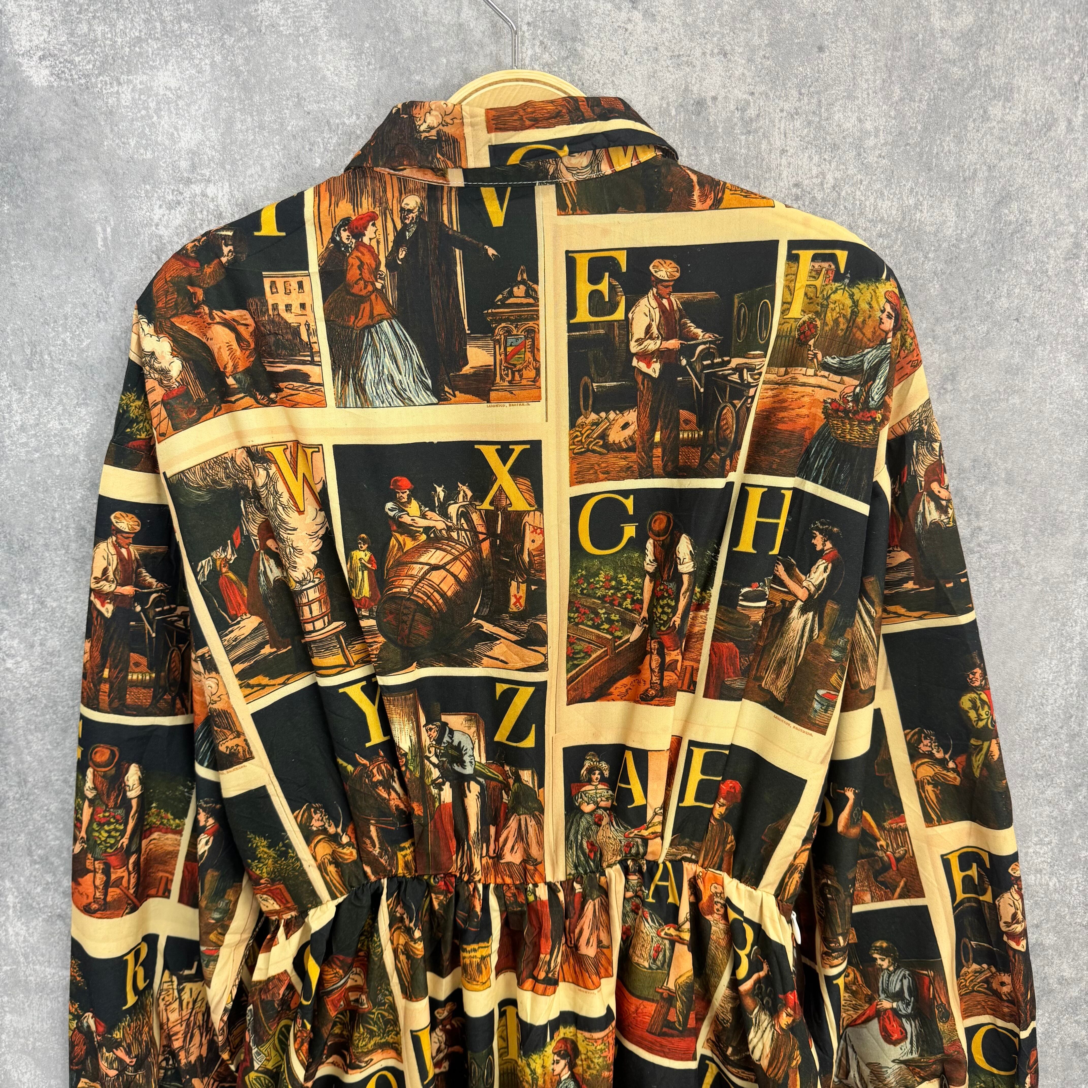 絵画を思わせるアートプリントが魅力的なシャツワンピース。