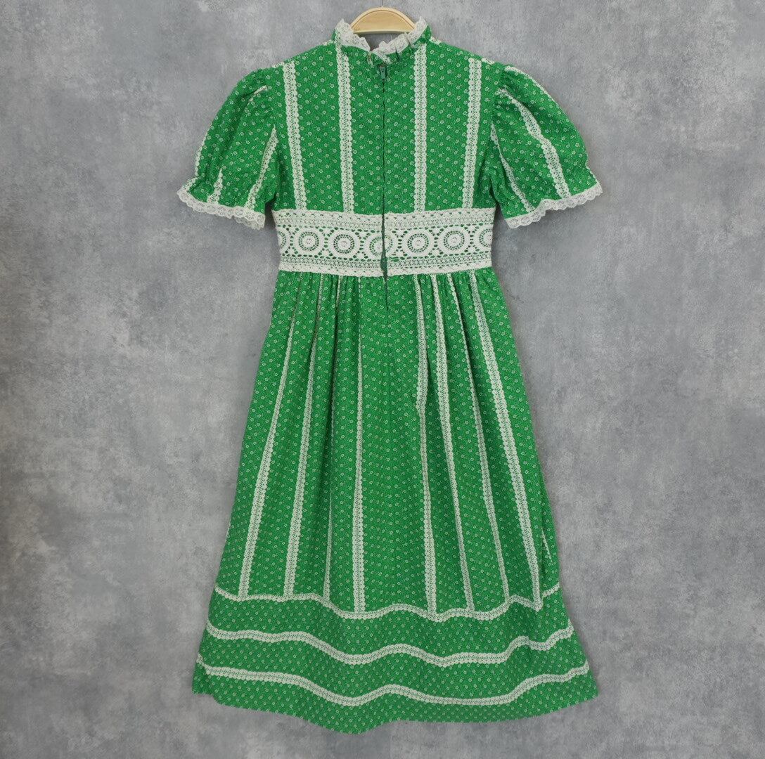 小花柄 ヴィンテージワンピース 小さいサイズ 立ち襟 レース装飾