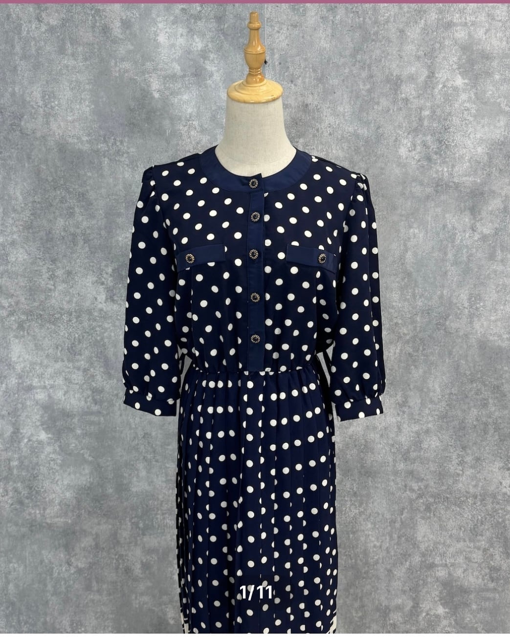 ⚪︎ポルカドット模様 昭和レトロワンピース プリーツスカート(250112-166)