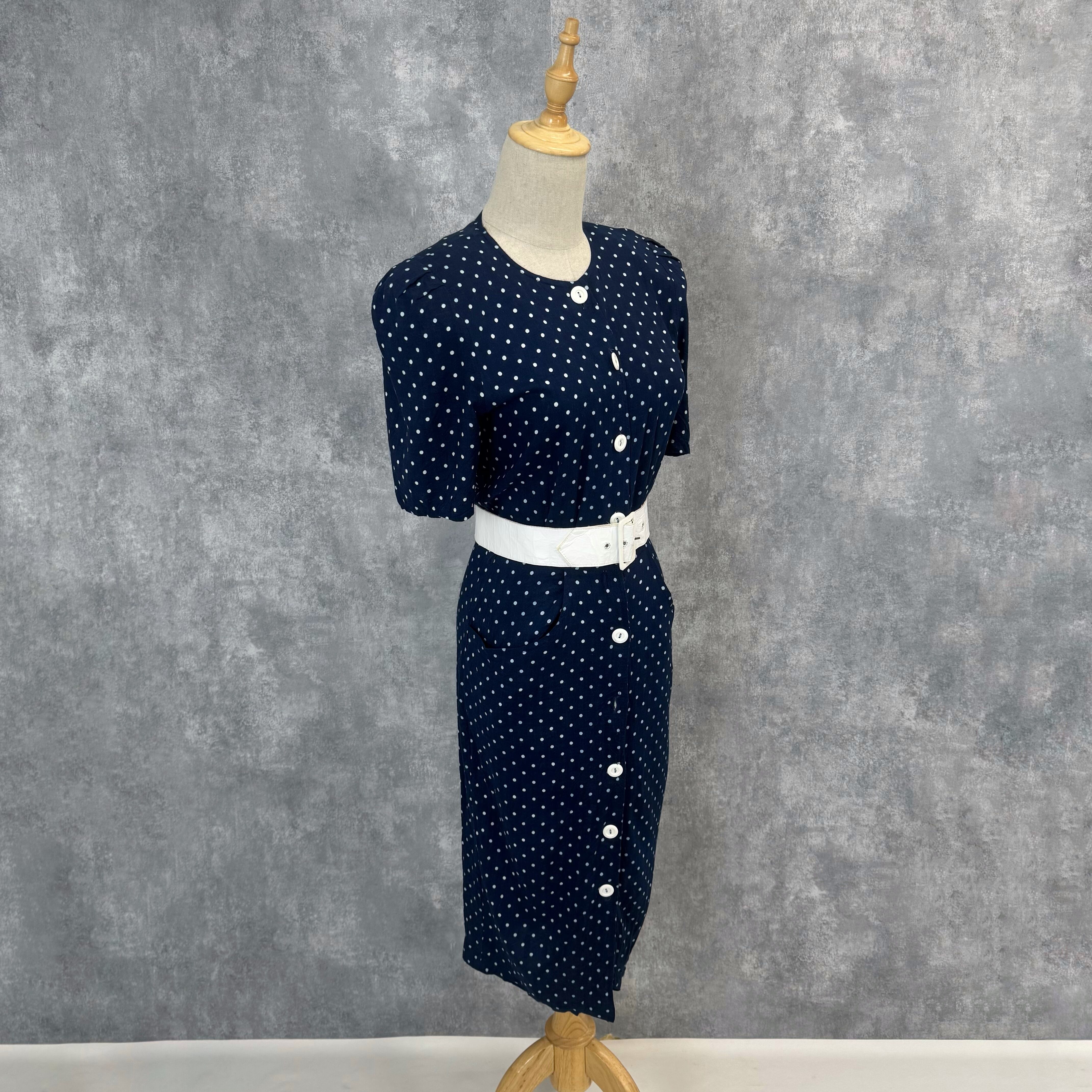ネイビー×ホワイトのポルカドットが、クラシカルでありながらもモダンな印象を演出。