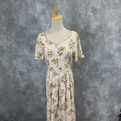 リネン混紡 フローラル柄ワンピース バラ模様 小花柄 フラワープリント