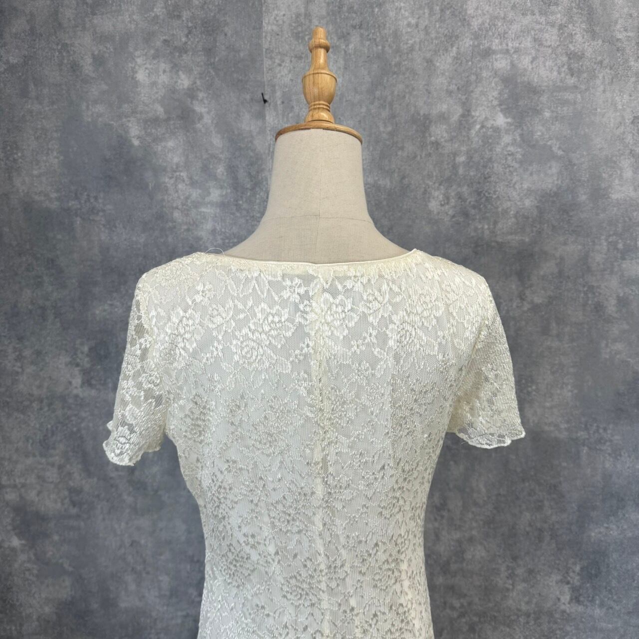 シンプルなシルエットながら、レースの美しさが際立ち、フォーマルからカジュアルなお出かけまで幅広く活躍します。
