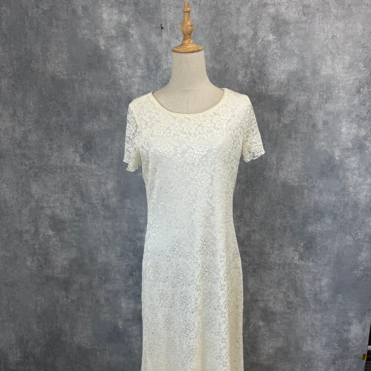 繊細なお花模様の総レースが全体を彩るエレガントなワンピースです。
