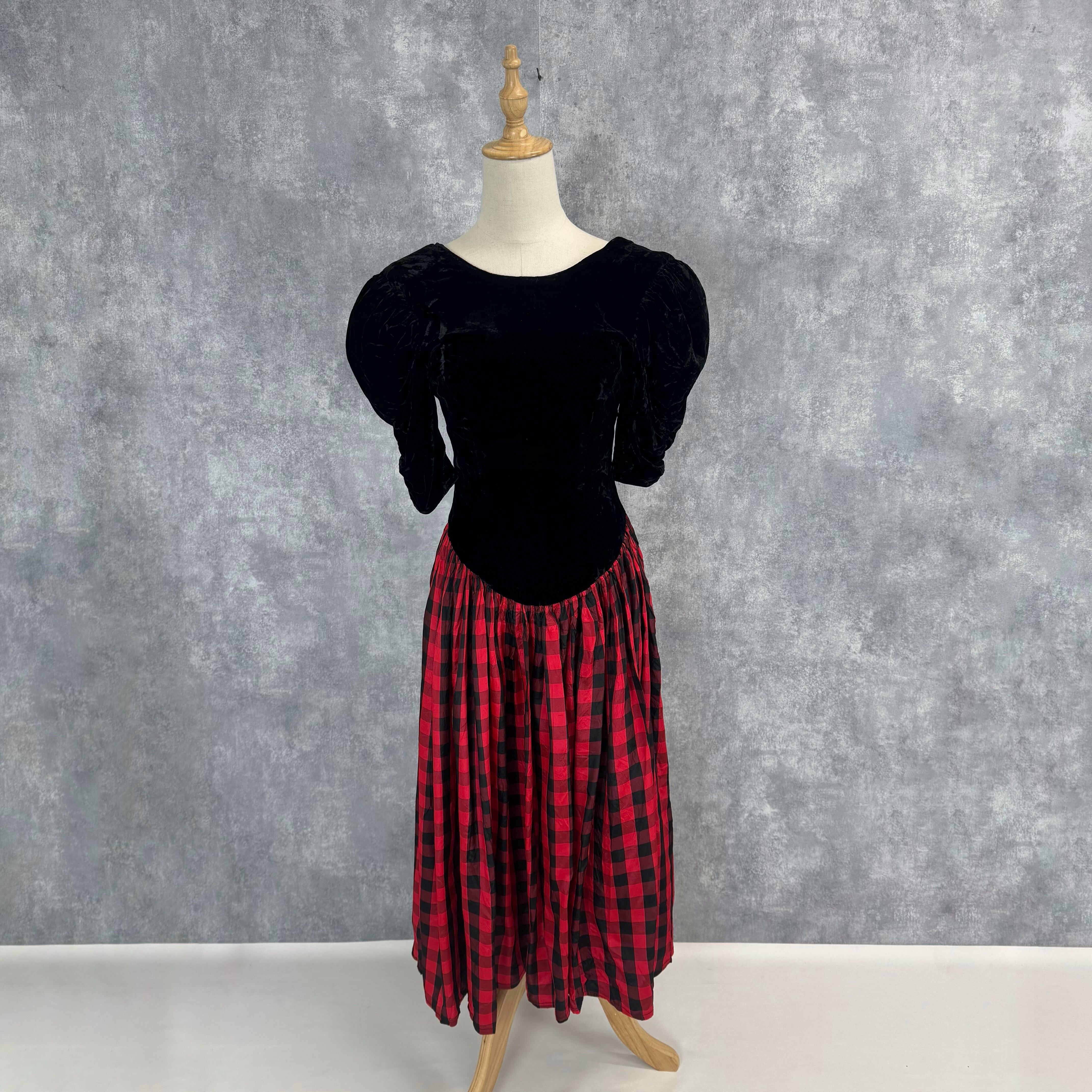 スカート部分はブロックチェック柄でほどよいカジュアル感と存在感を両立。