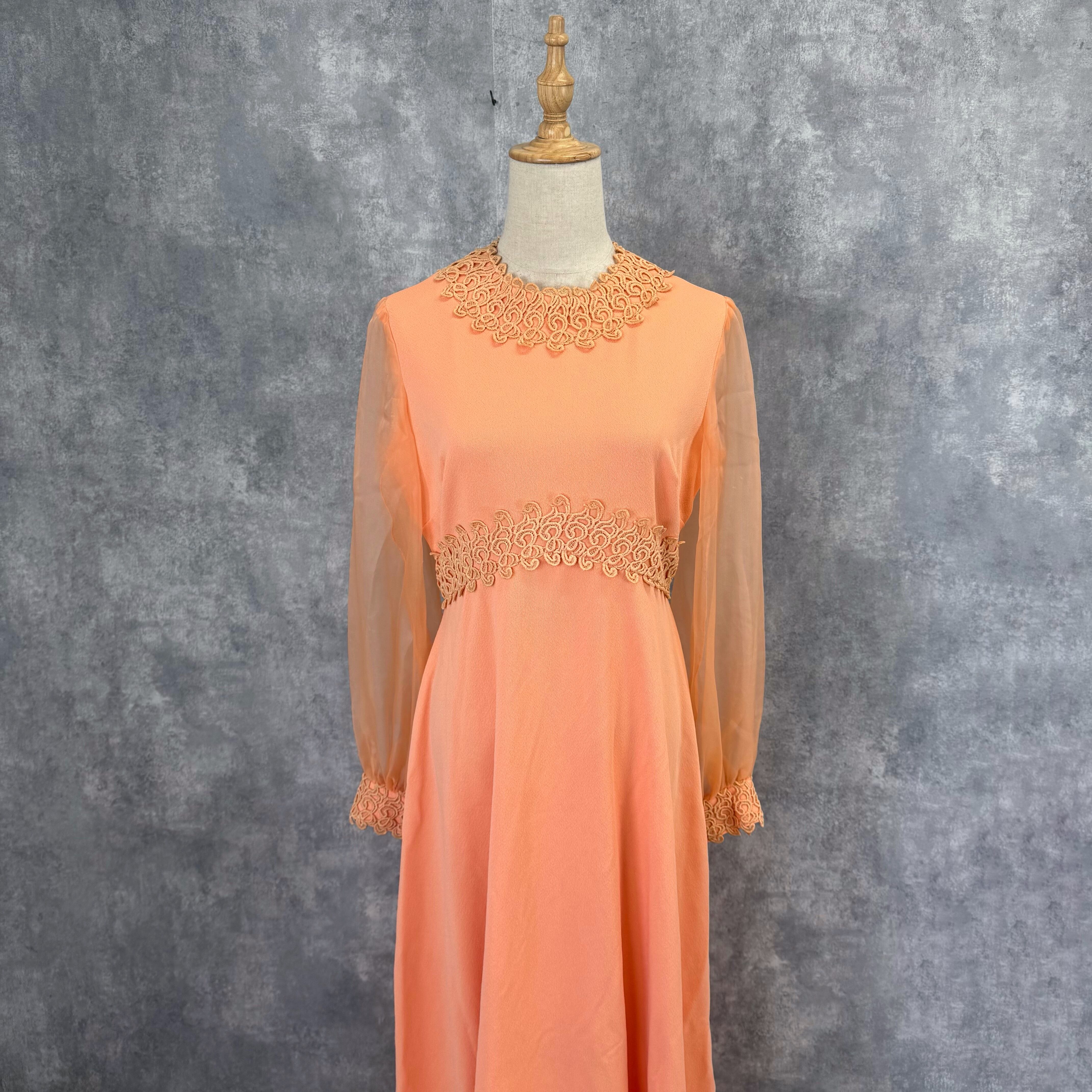 やわらかなピーチカラーが映えるクラシカルワンピース