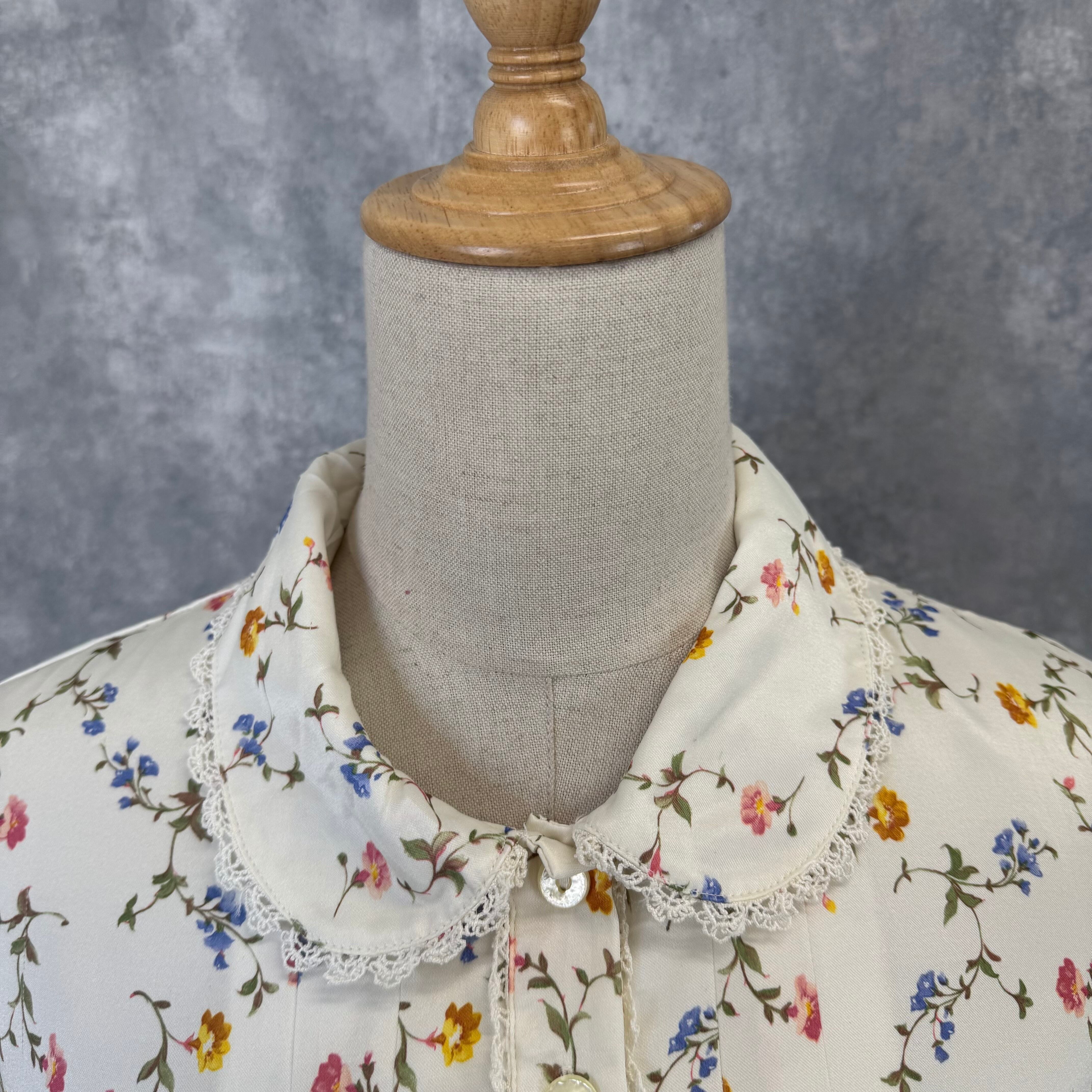襟元には繊細なレースをあしらい