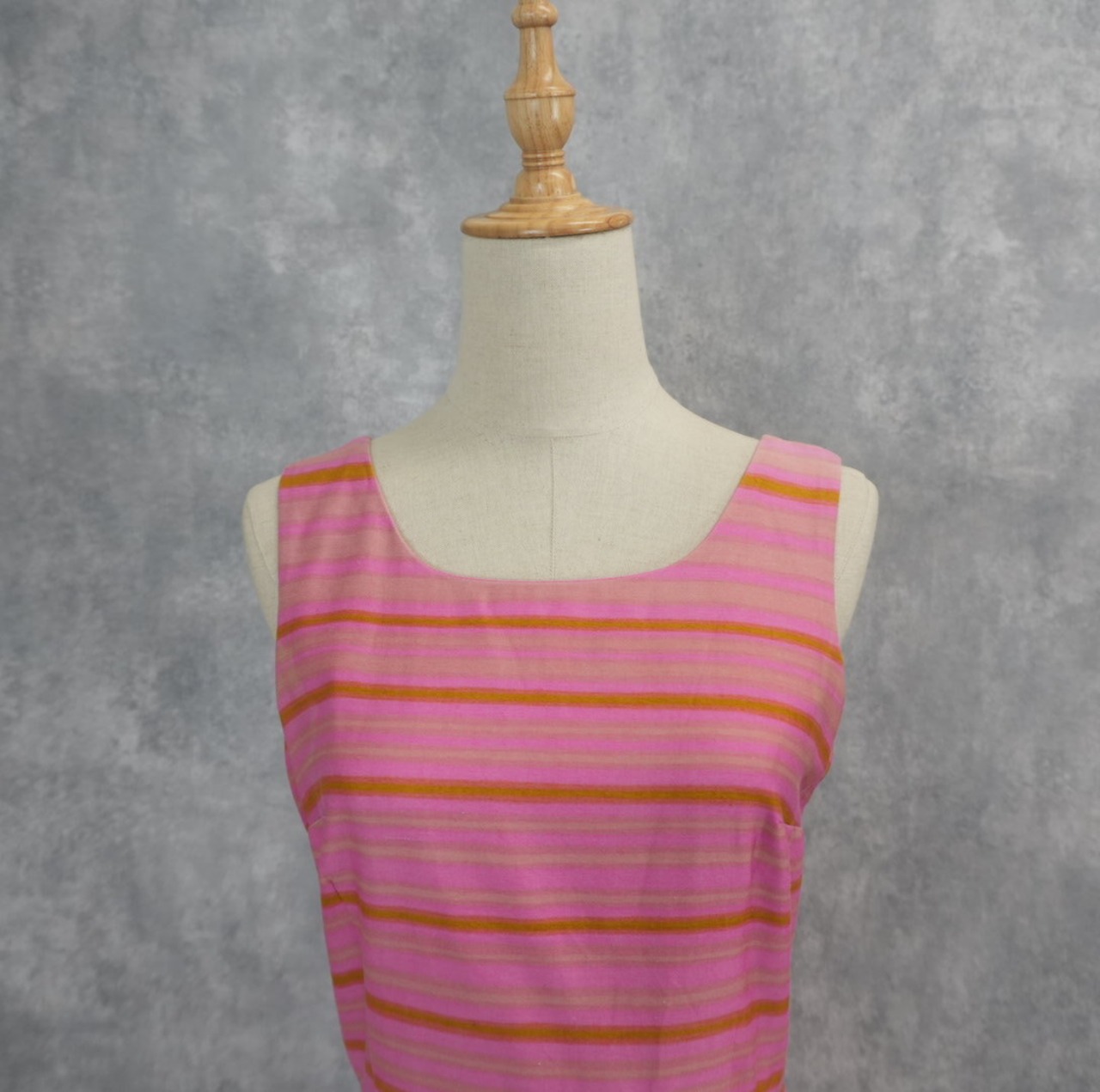 一目で心奪われるピンク×オレンジのストライプ柄のワンピースです