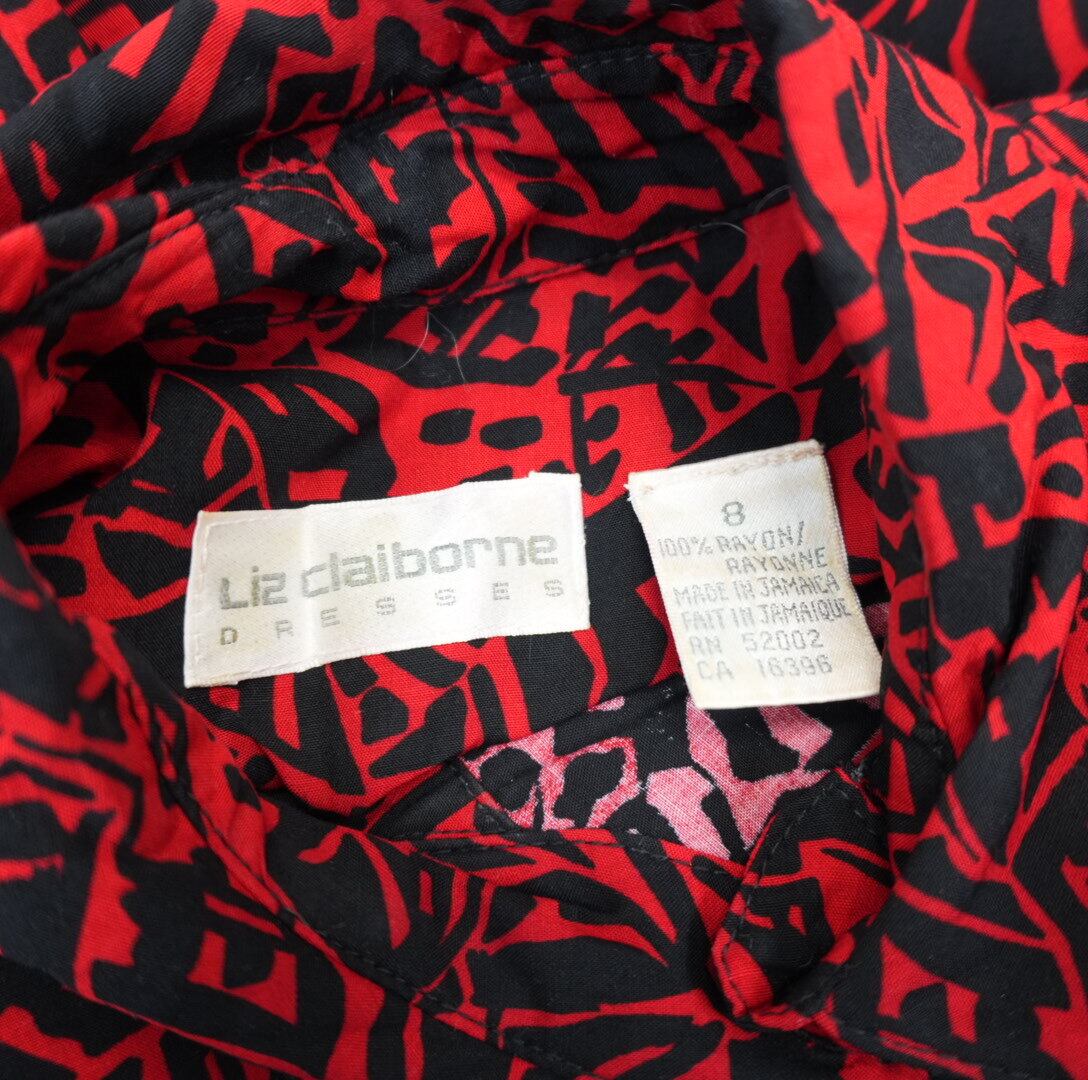 【ヴィンテージ感たっぷり】アートな赤×黒プリント 個性派シャツワンピース 幾何学模様