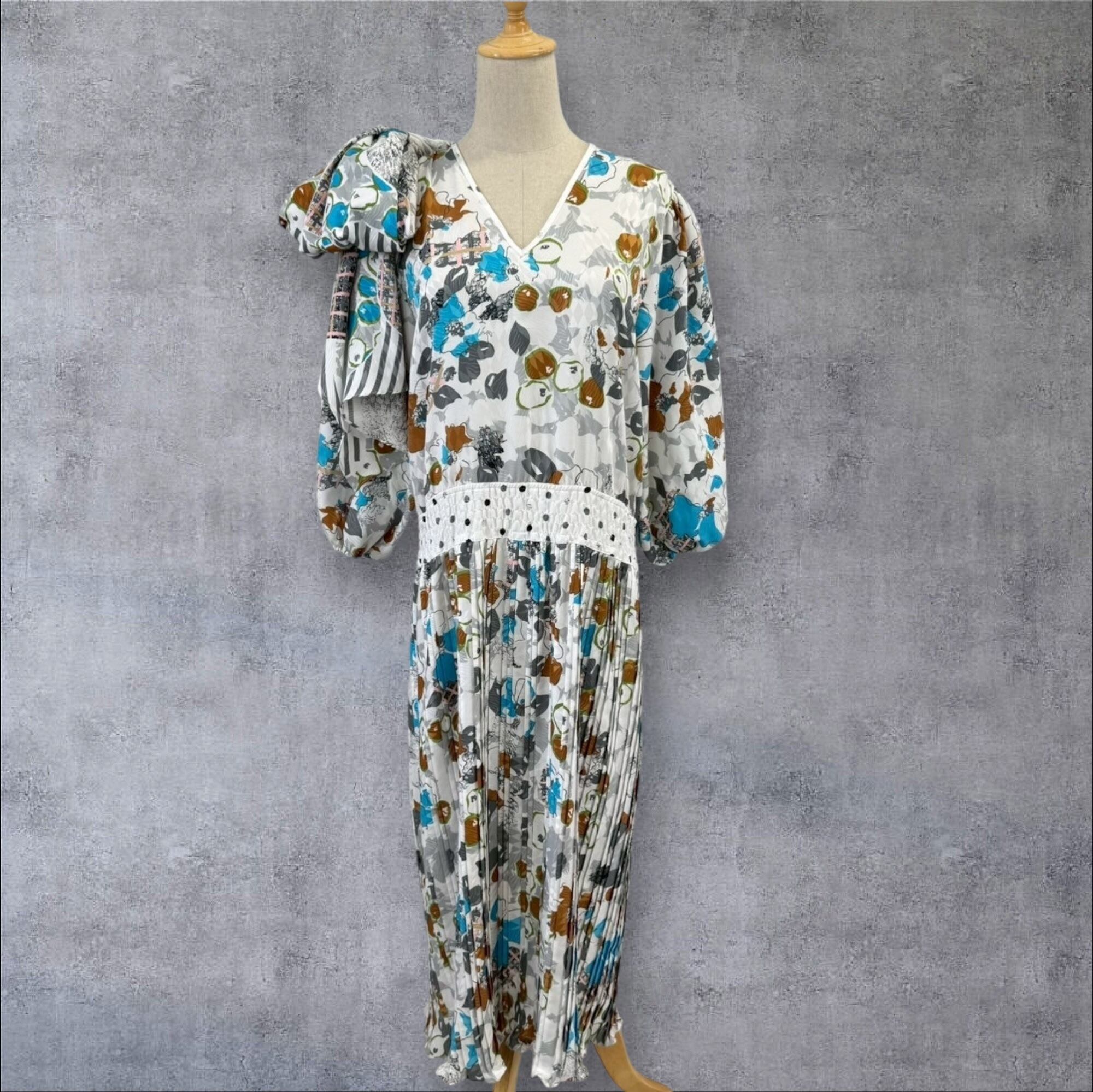 甘さとアートが共存する* ショルダーリボンデザイン ヴィンテージワンピース プリーツスカート