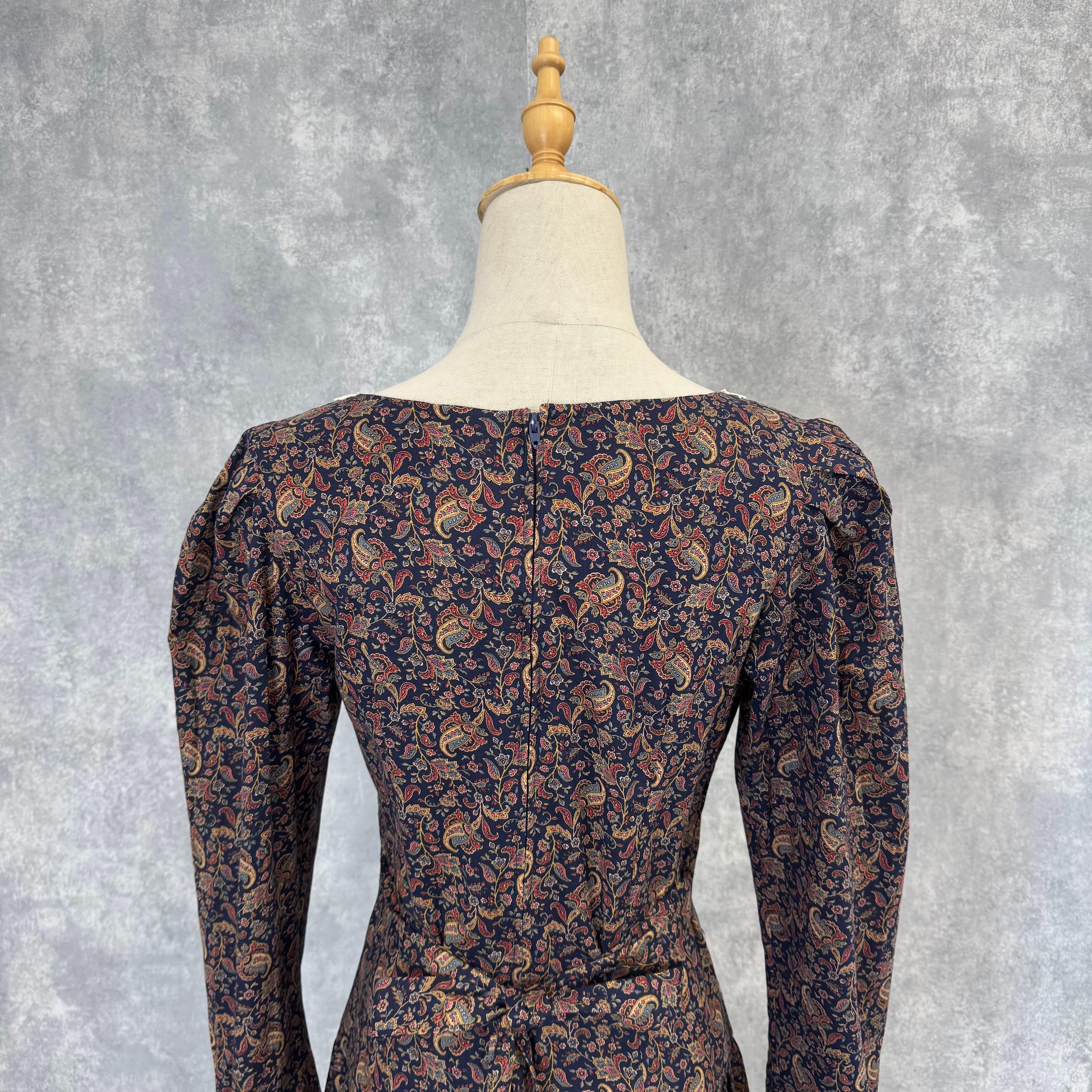 繊細なペイズリー柄と華やかなレース襟が目を惹くワンピース
