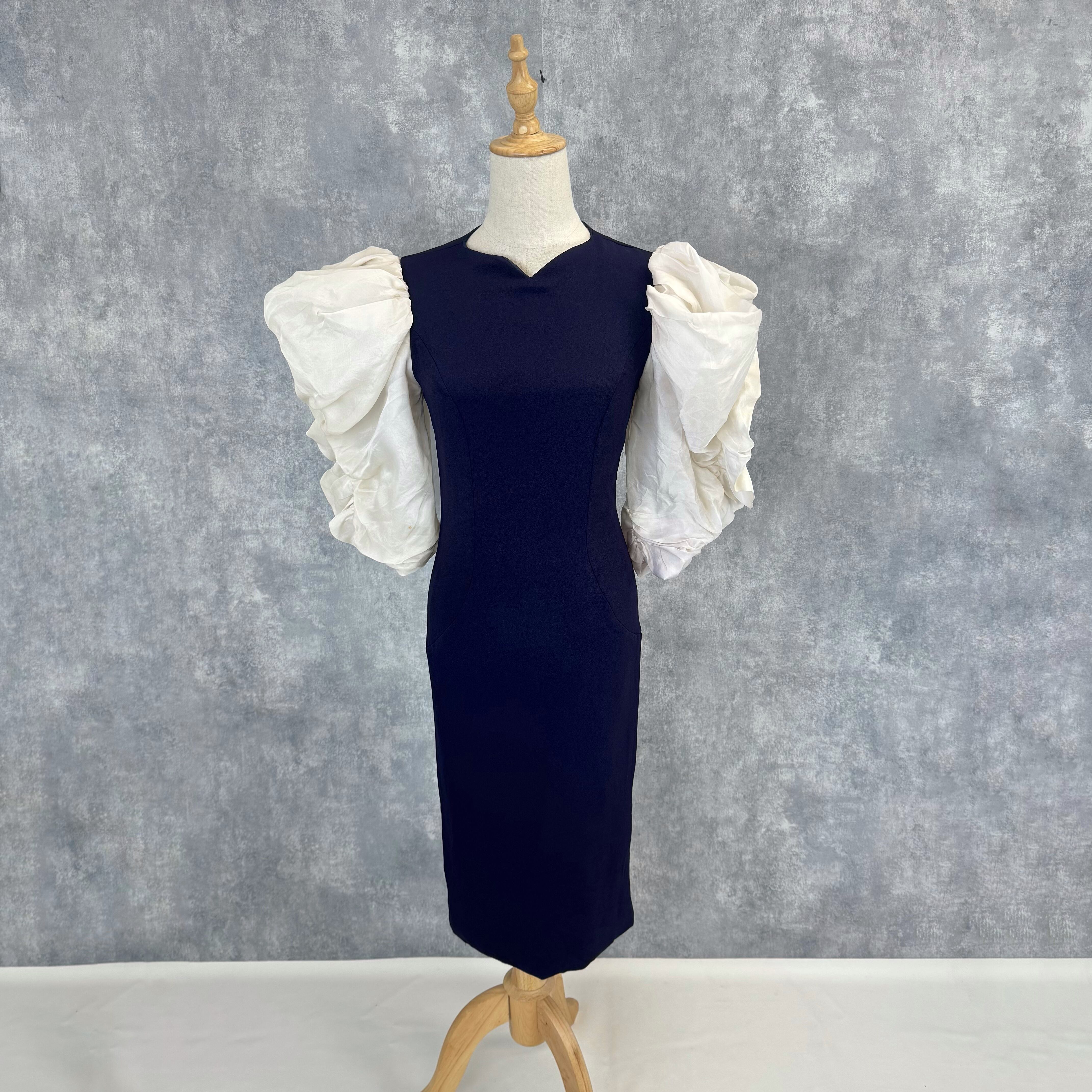 Victor Costa(ヴィクター・コスタ)デザイナーズヴィンテージ 80s ホイップ袖 ボリュームスリーブ Iライン メリハリワンピース