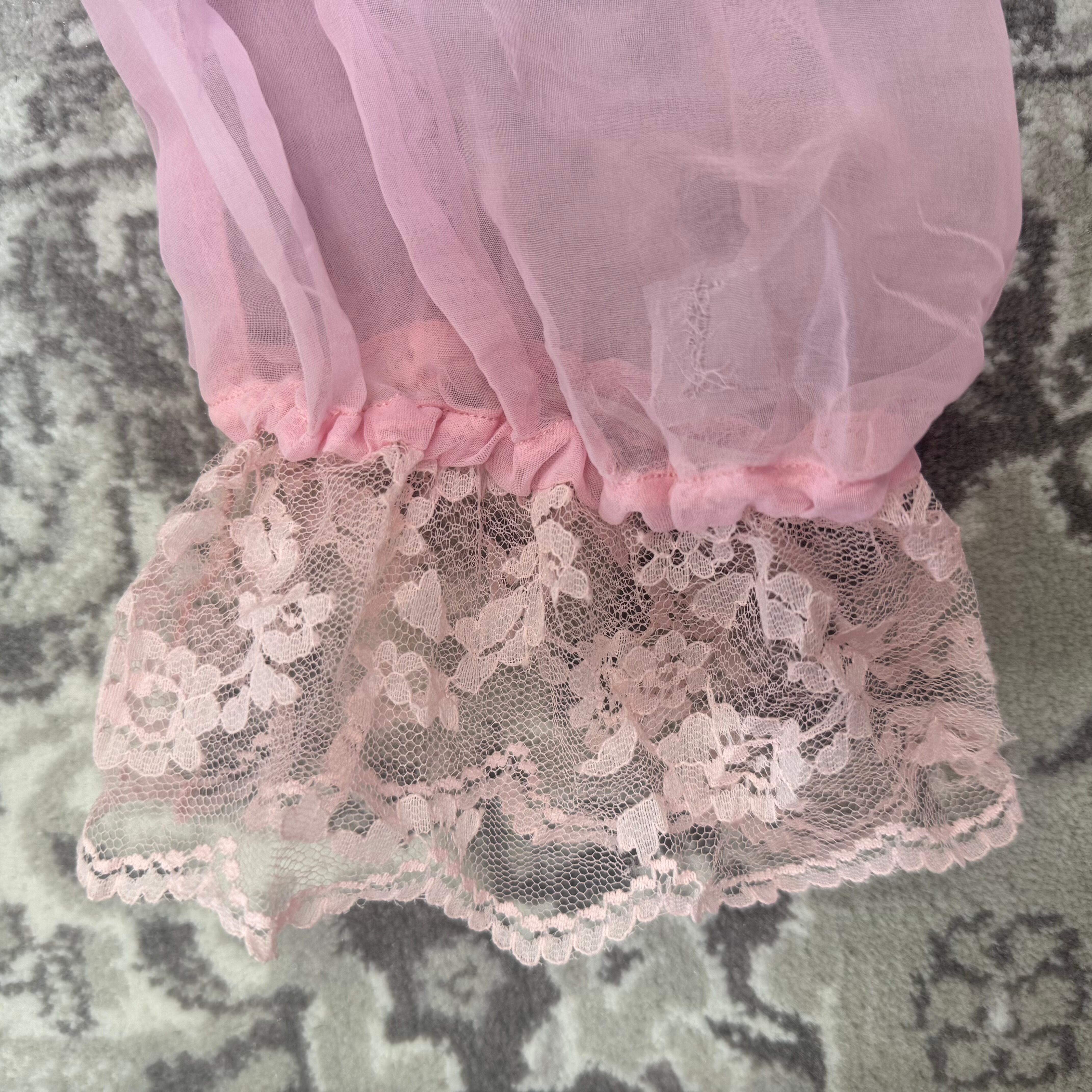 ロマンティックワンピース レース装飾フリルカラー バックウエストリボン ピンク色