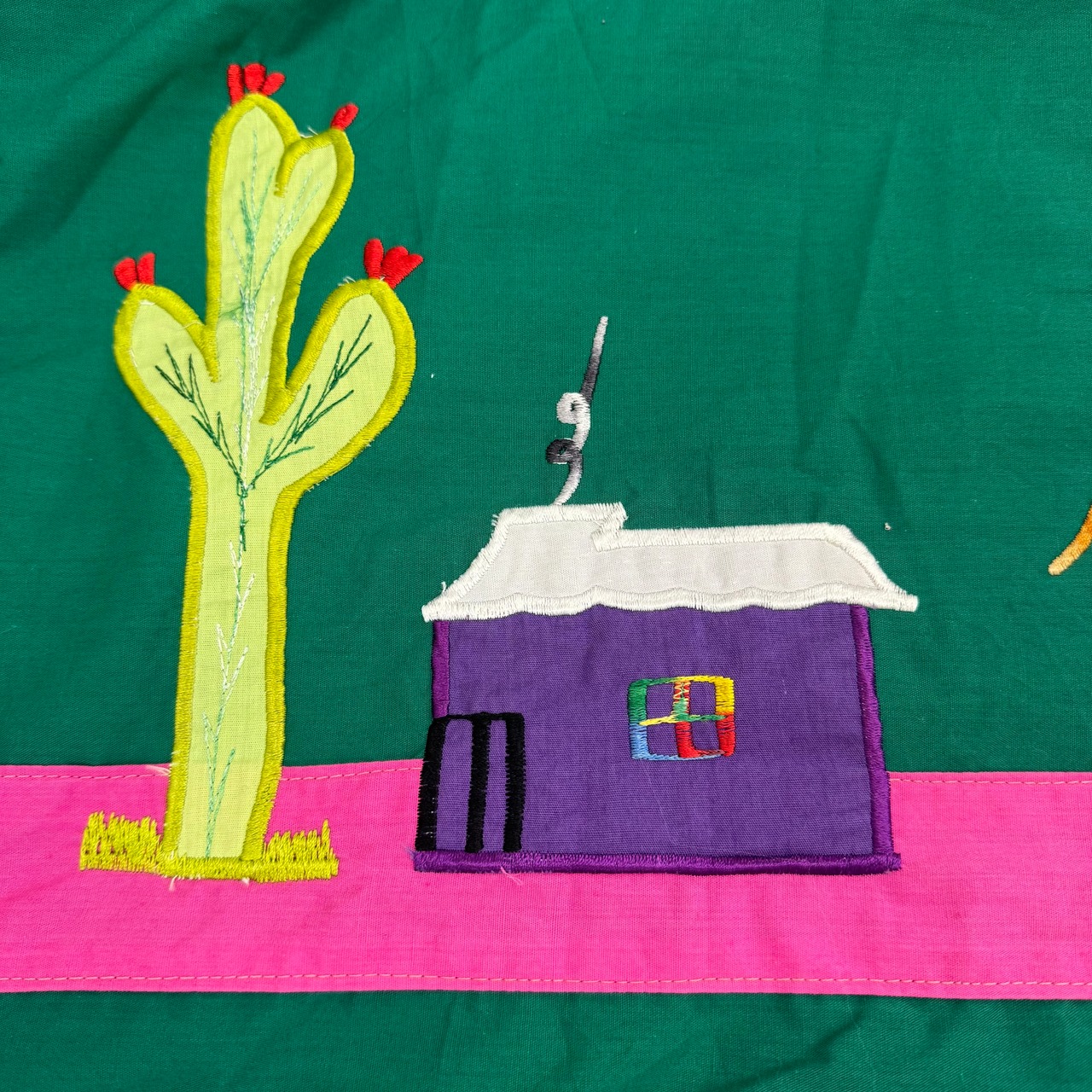 グリーン地×マルチカラー刺繍(イエロー、ピンク、パープル、ホワイトなど)