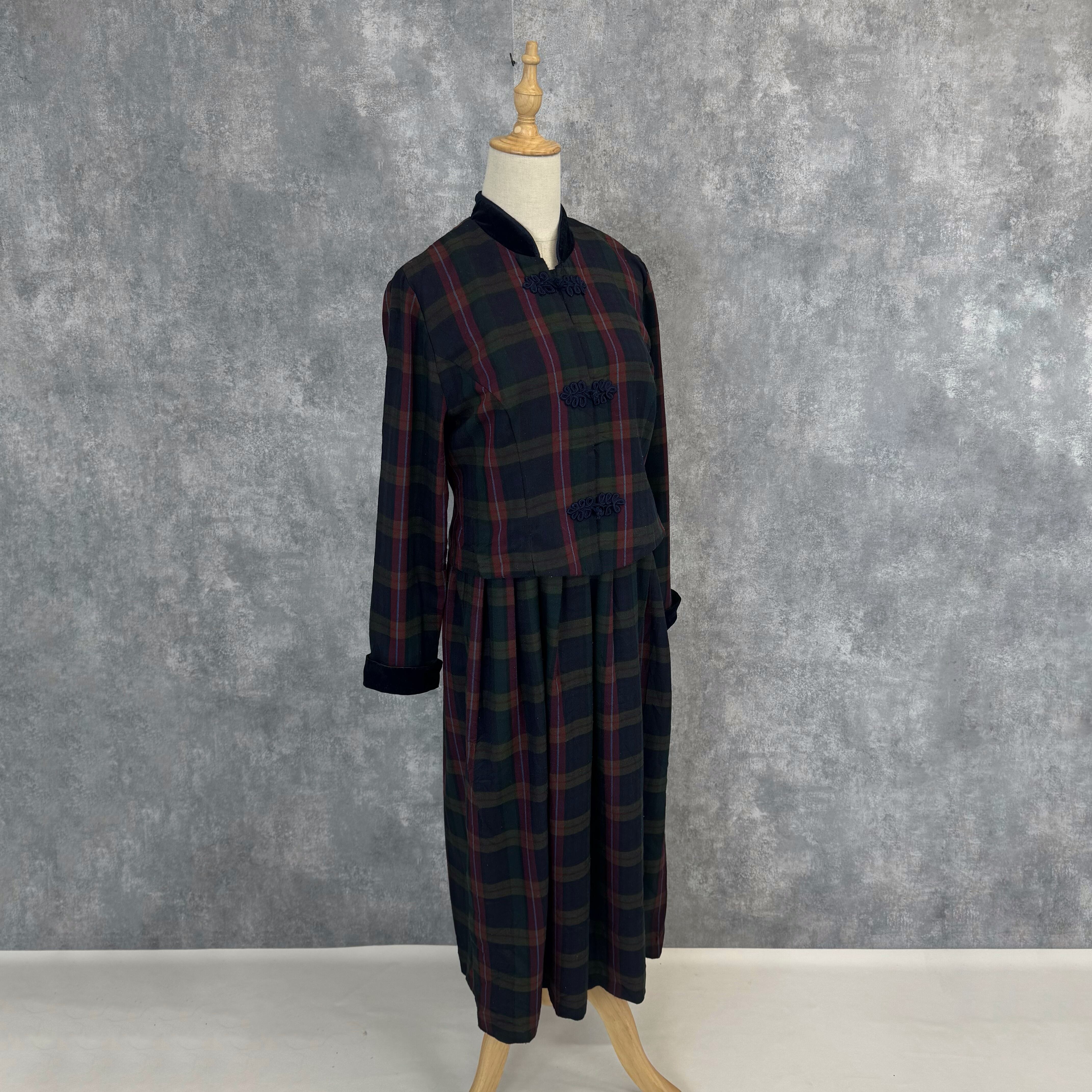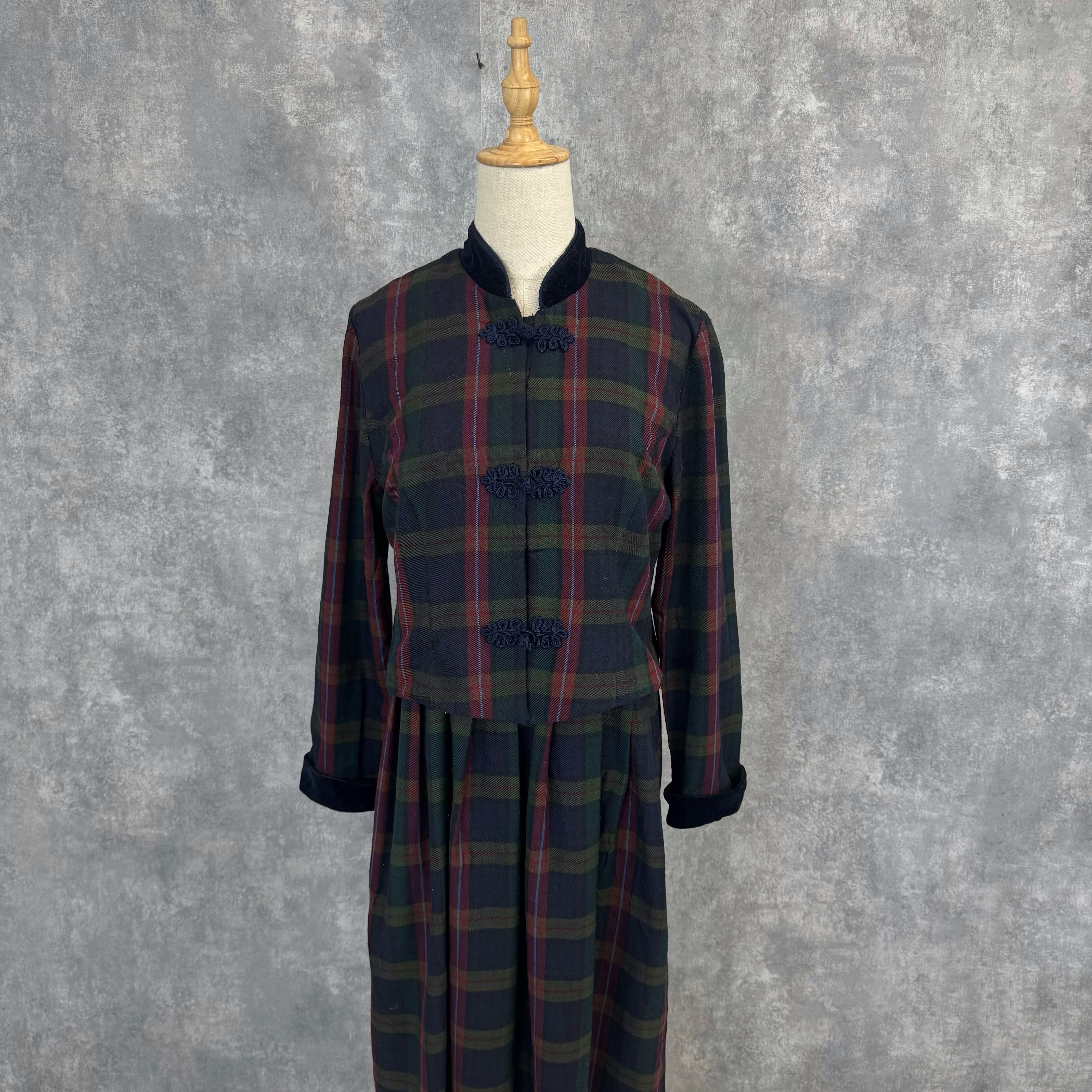 ディープグリーン×ボルドー×ネイビーの落ち着いたチェック