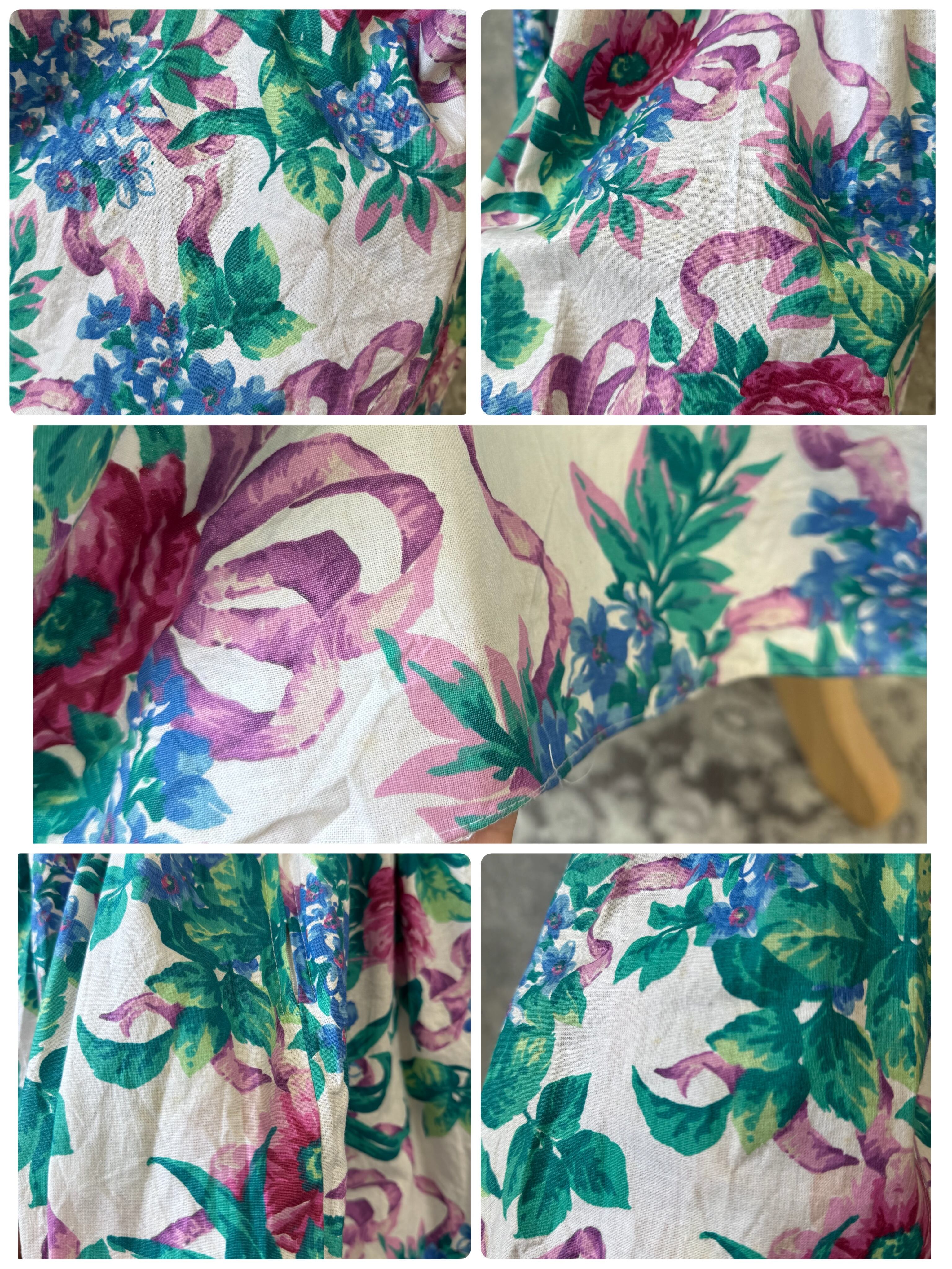 オフホワイト地にピンク・グリーン・ブルーのフラワープリント