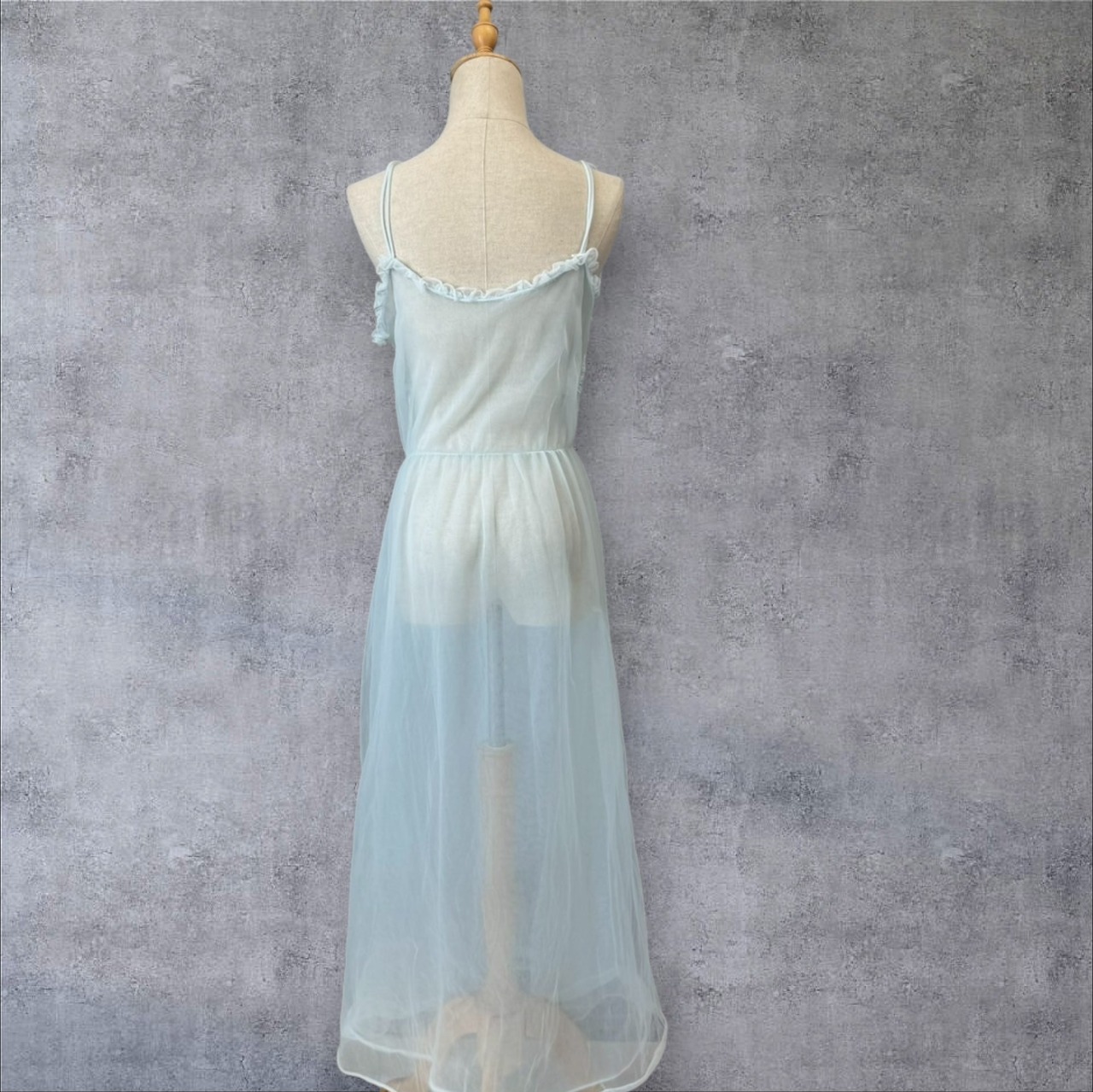 レース×チュール ランジェリーキャミソールワンピース ペールブルー