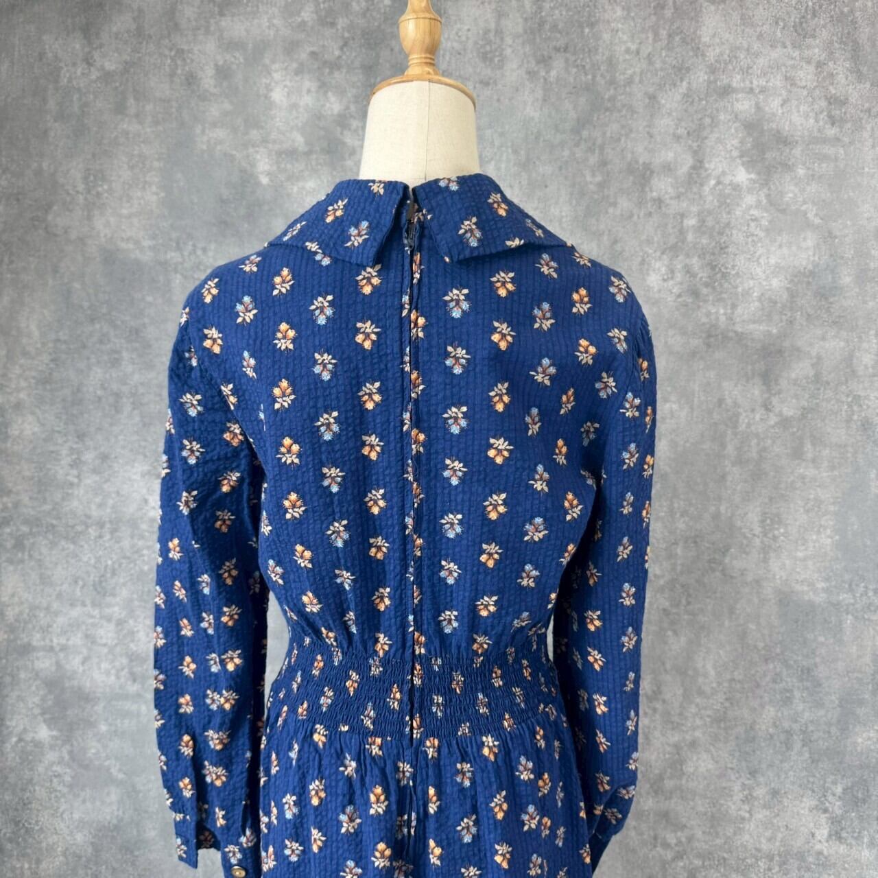 深みのあるネイビーブルー地に、ブルー×オレンジの小さな花々が咲き誇り、上品な可愛らしさを演出してくれます。