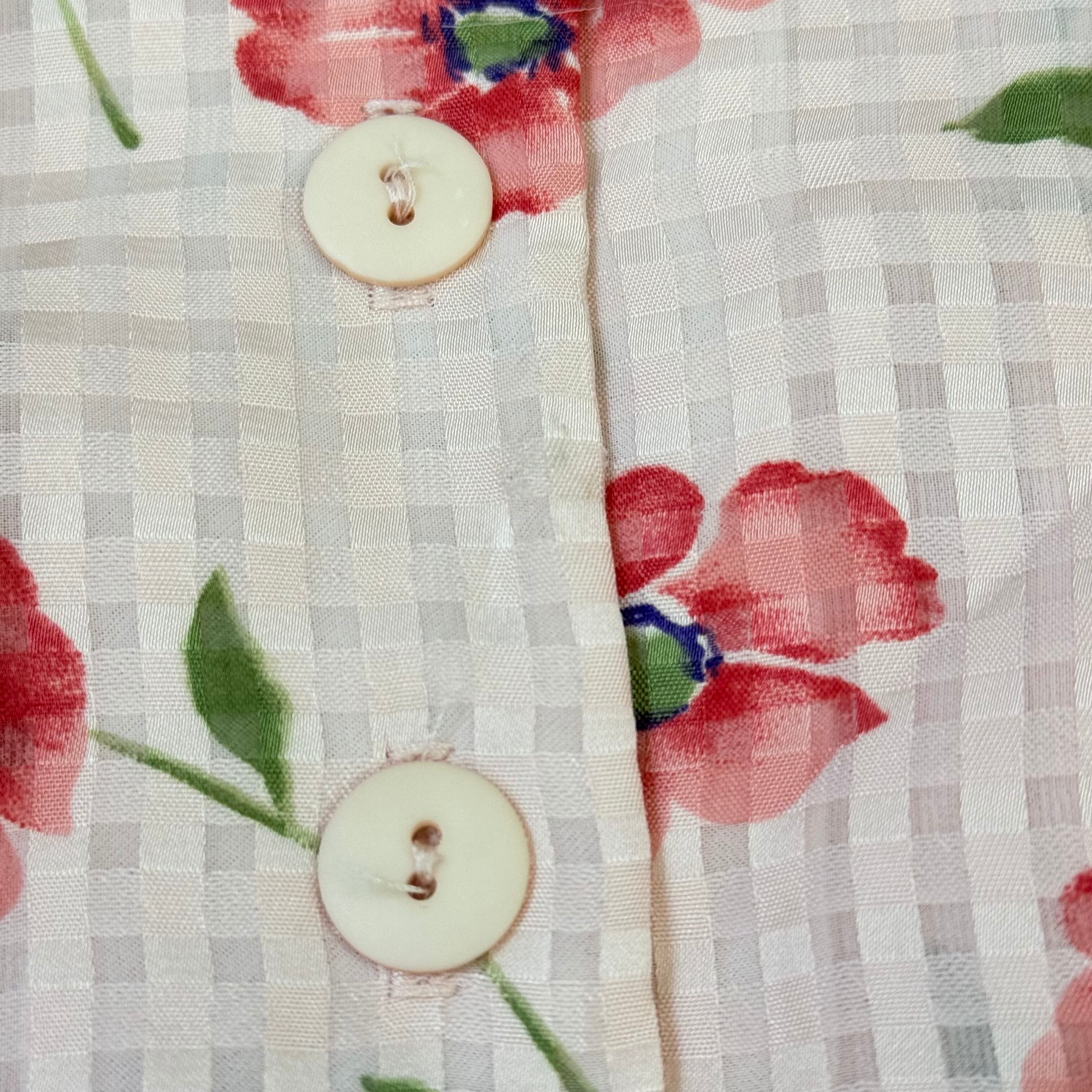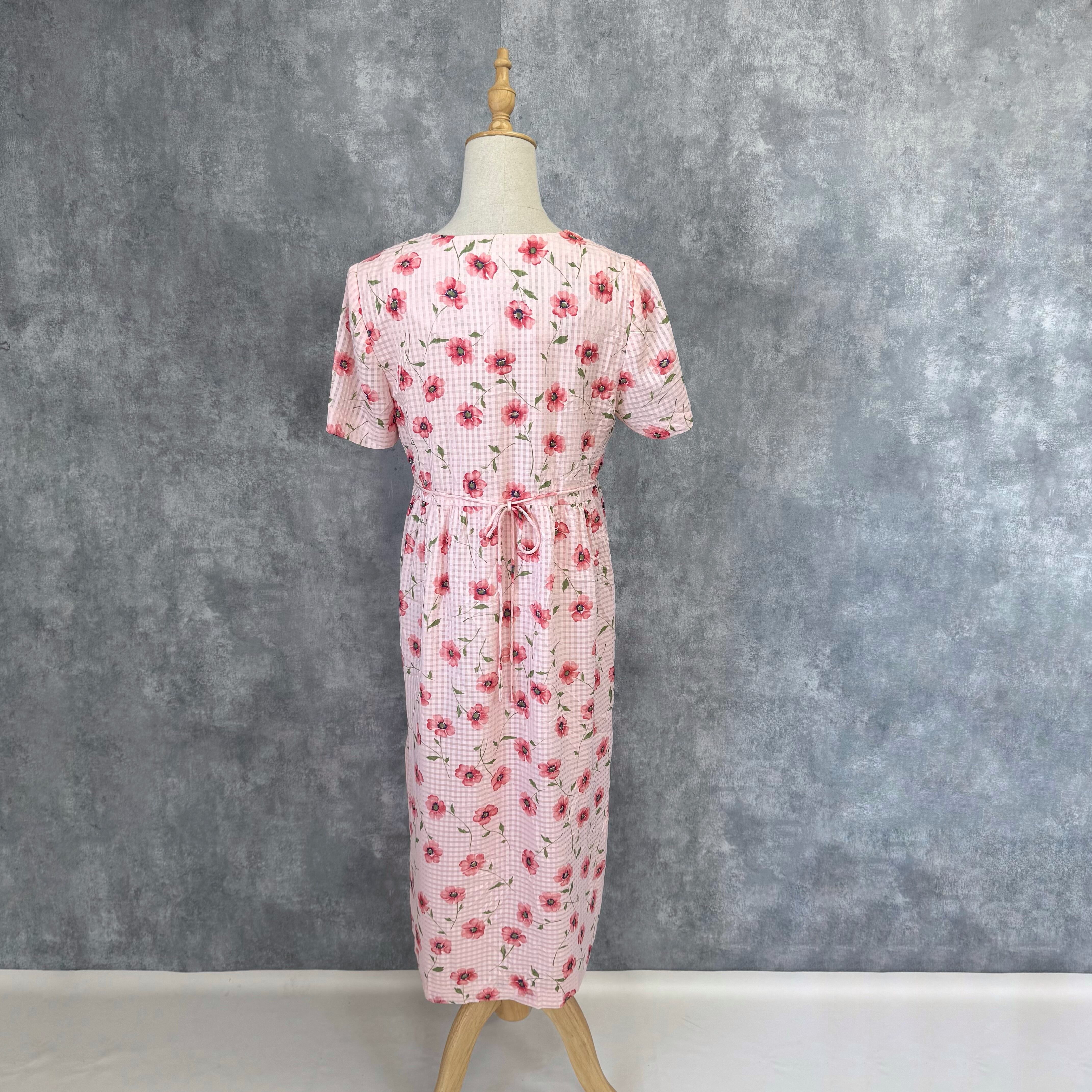 優しいピンクのギンガムチェックに、愛らしい赤い小花が咲き誇るヴィンテージワンピース。
