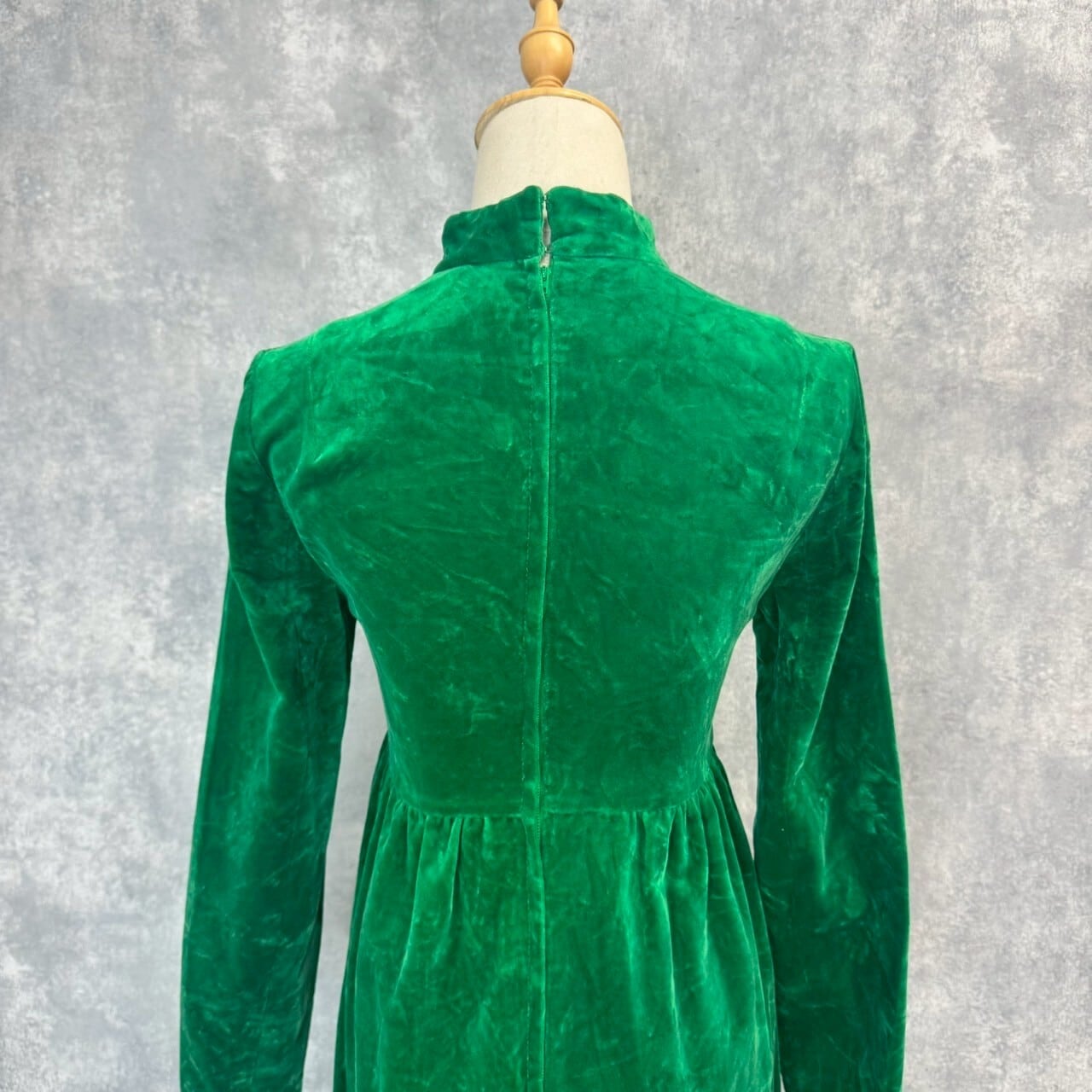 高貴なムードをまとえる、エメラルドグリーンのベルベットワンピース。