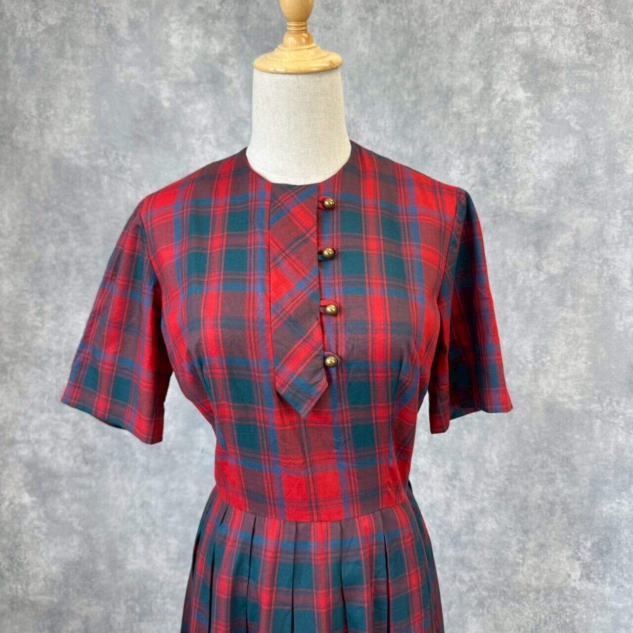 Sue Brett ヴィンテージ タータンチェックワンピース|クラシカルレッド×グリーン