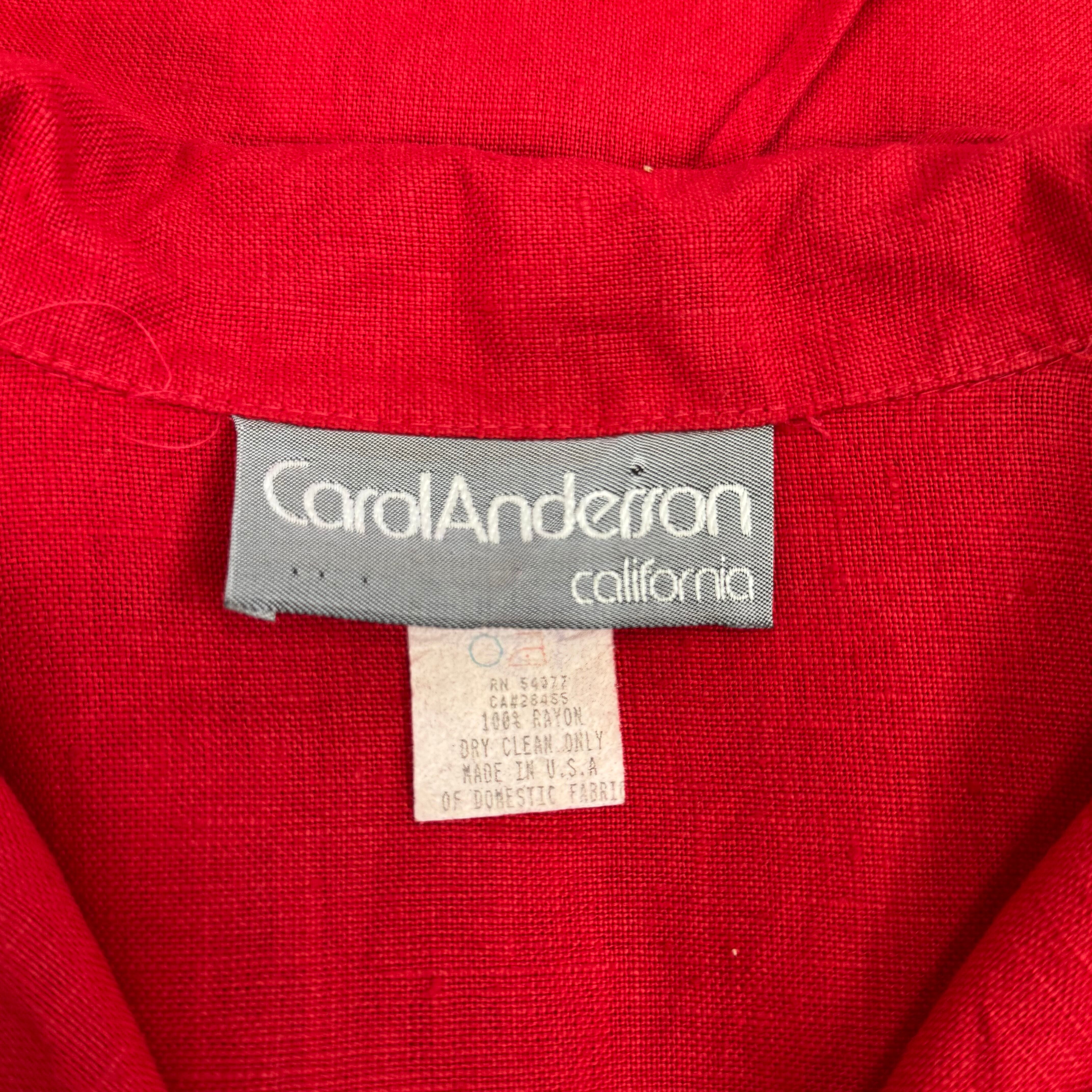 深紅カラー 美シルエット Carol Anderson ヴィンテージ オープンカラー ロングシャツワンピース