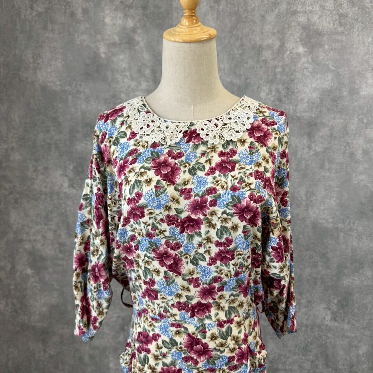 華やかなフラワープリントに、ヴィンテージ感漂うレース襟がときめくJONI BLAIRのワンピース。