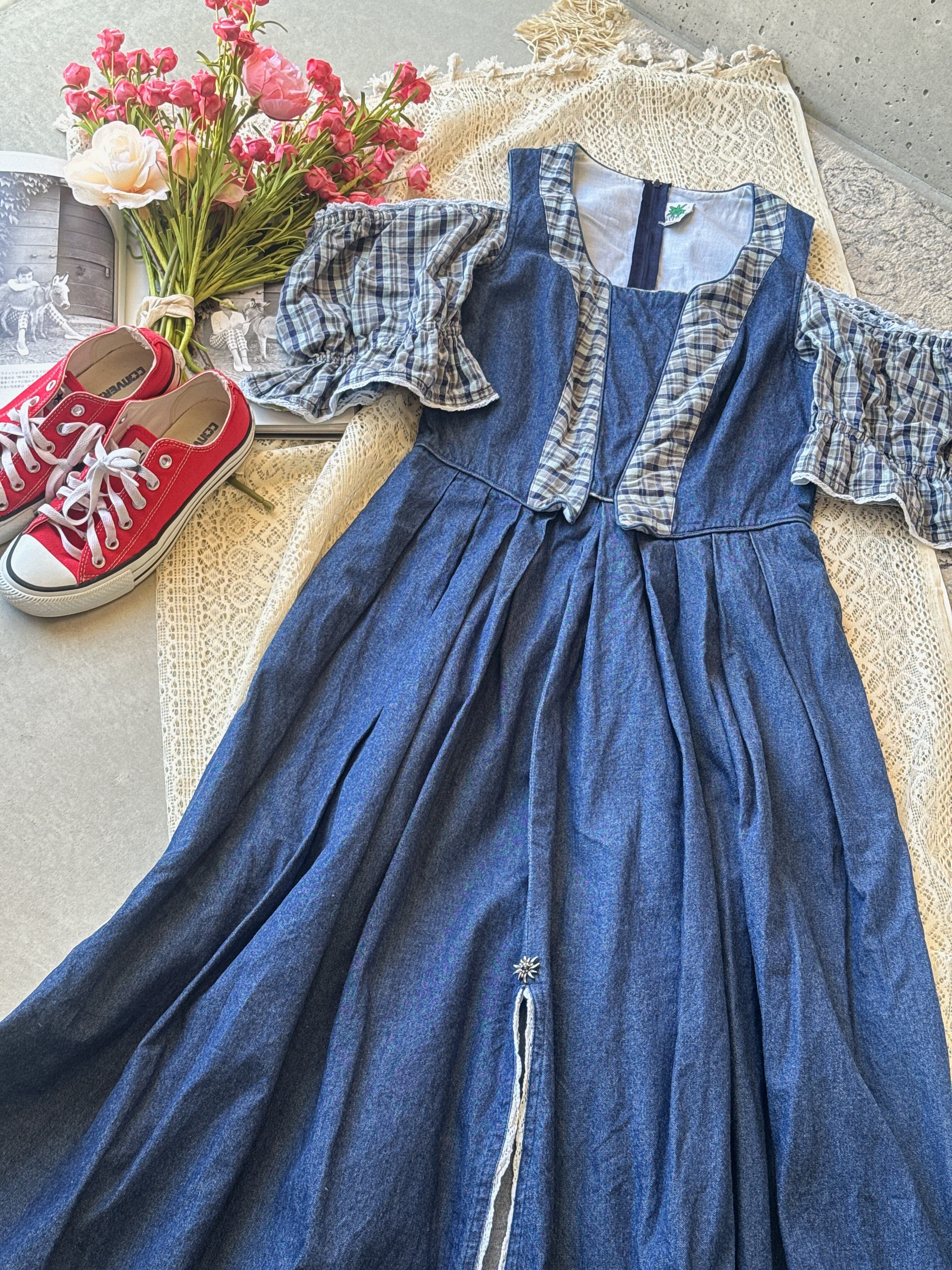 #民族衣装風 #ヨーロッパ古着 #ワンピースコーデ #デニム風ワンピース #チェック柄 #クラシカル #古着女子