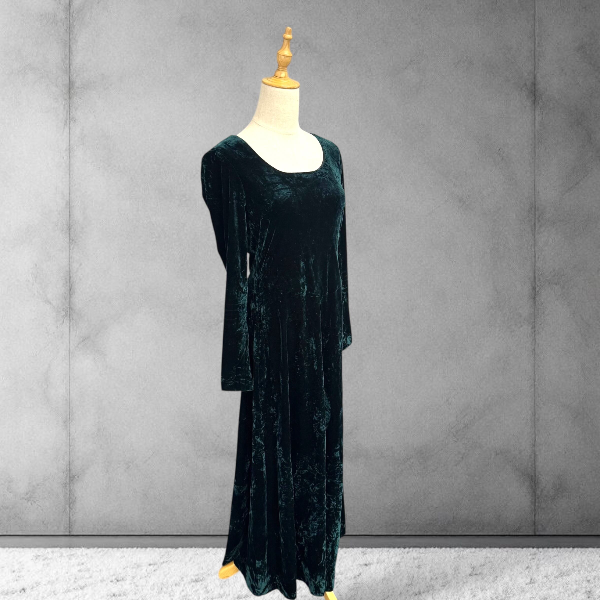 1980年代〜1990年代頃 フォレストグリーンのベロアワンピース 秋冬ワンピ エレガントスタイル