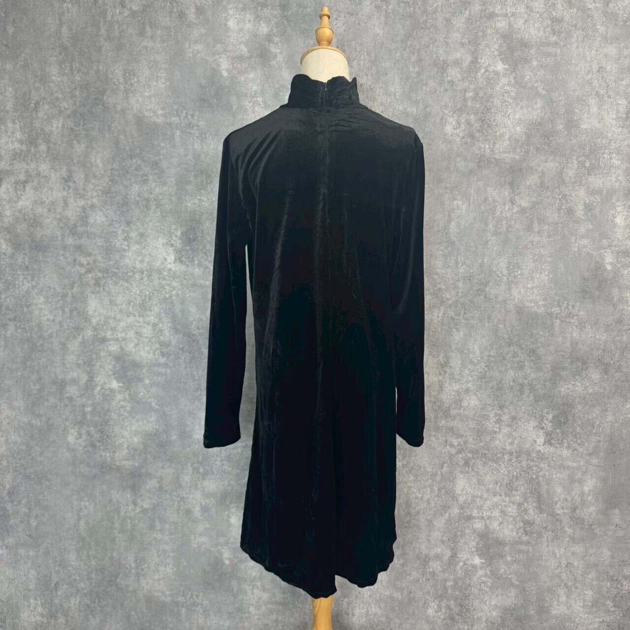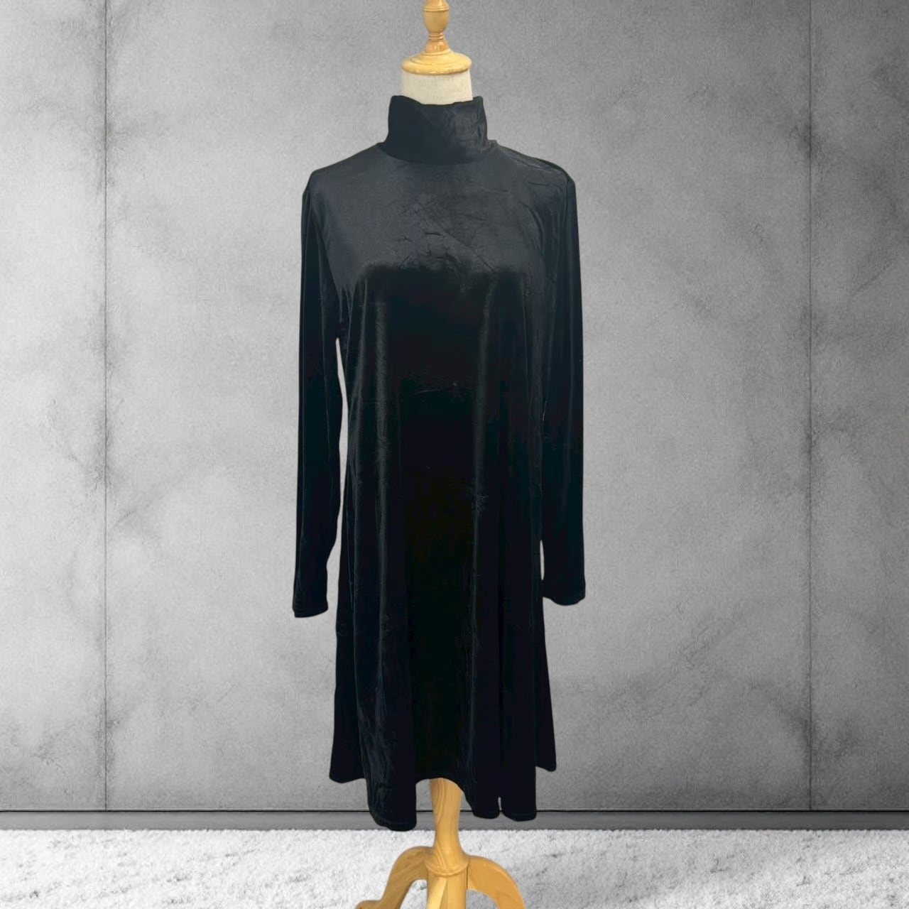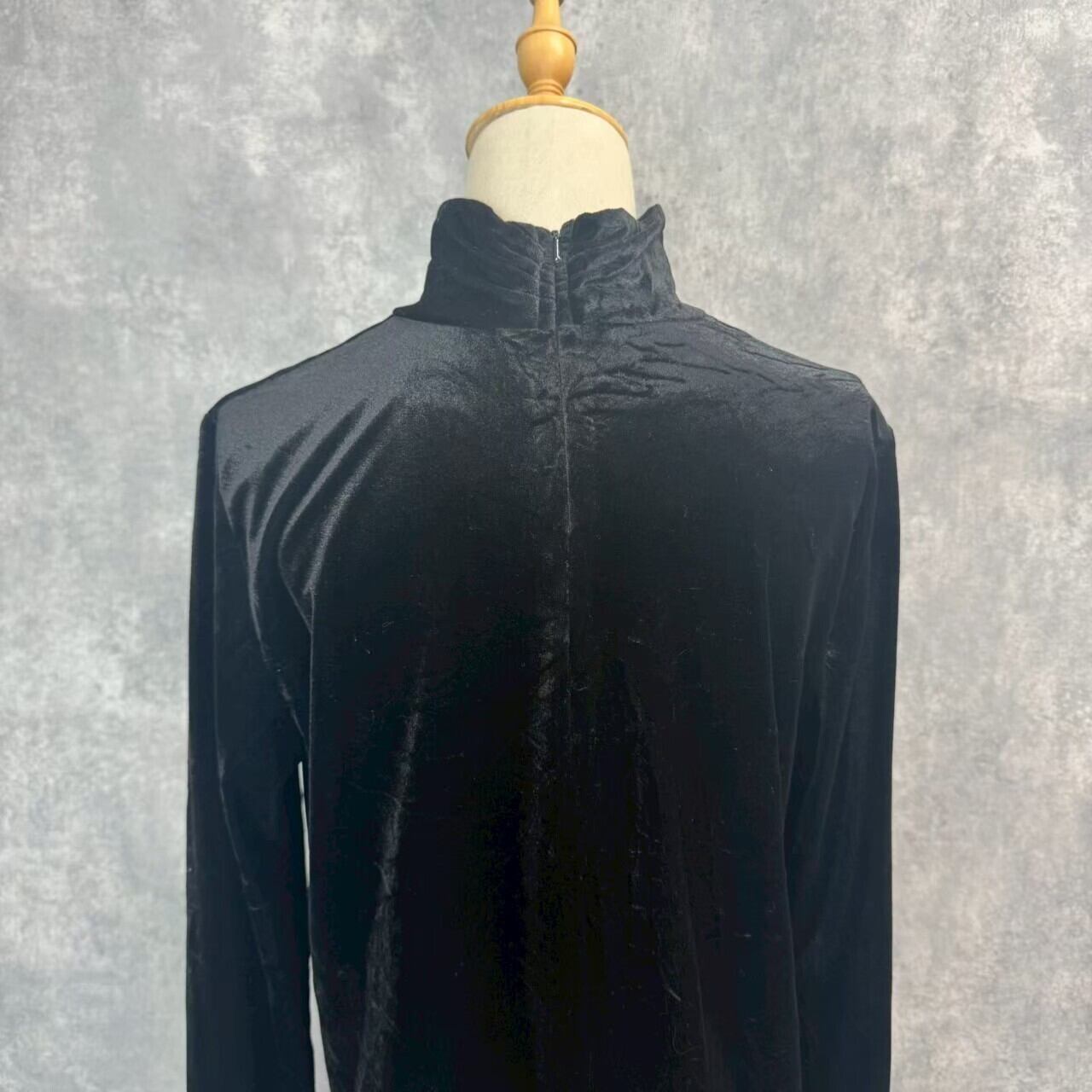しっとりとした光沢感が美しいブラックベロア素材のタートルネックワンピース。