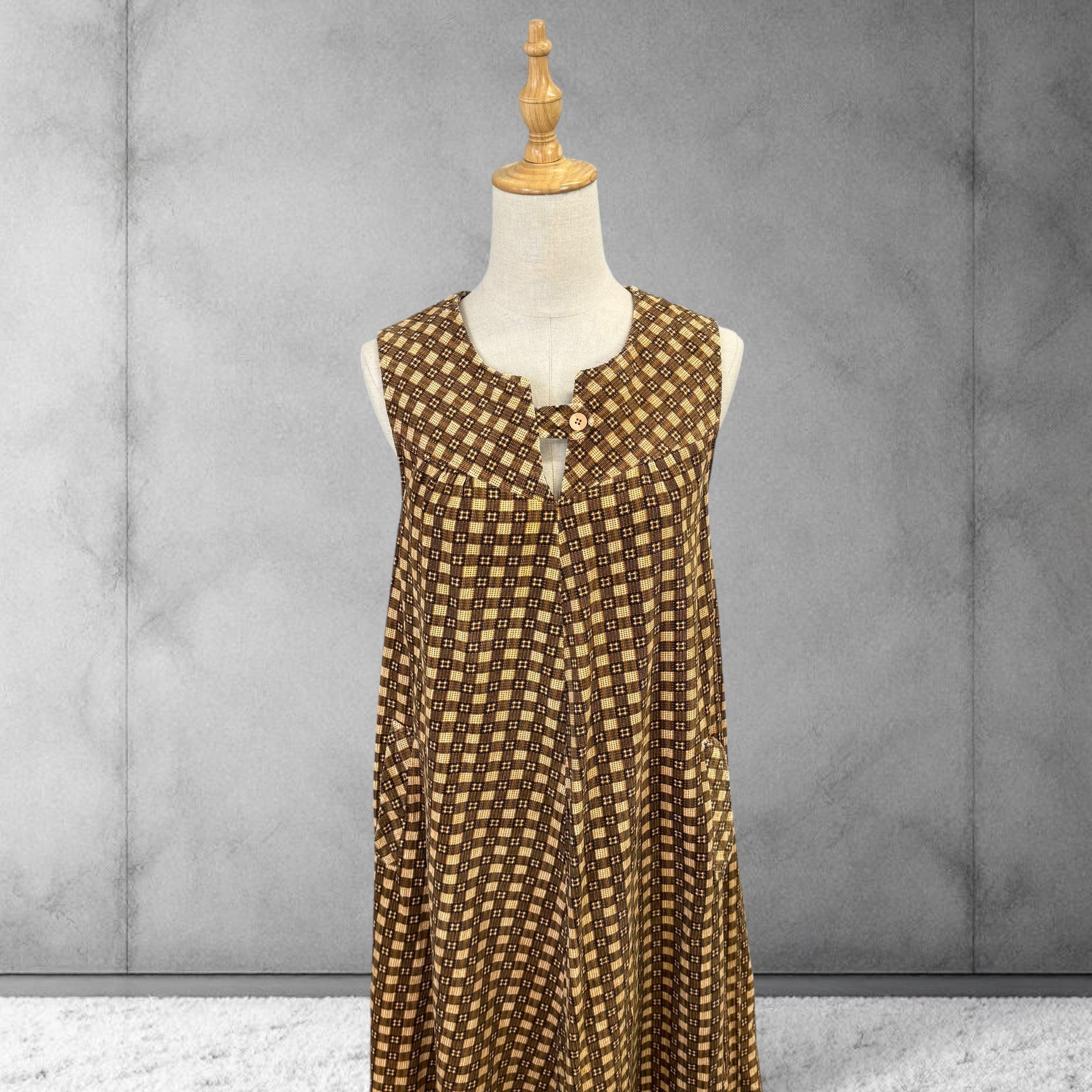レトロ感漂うブラウン系チェック柄のヴィンテージワンピース。