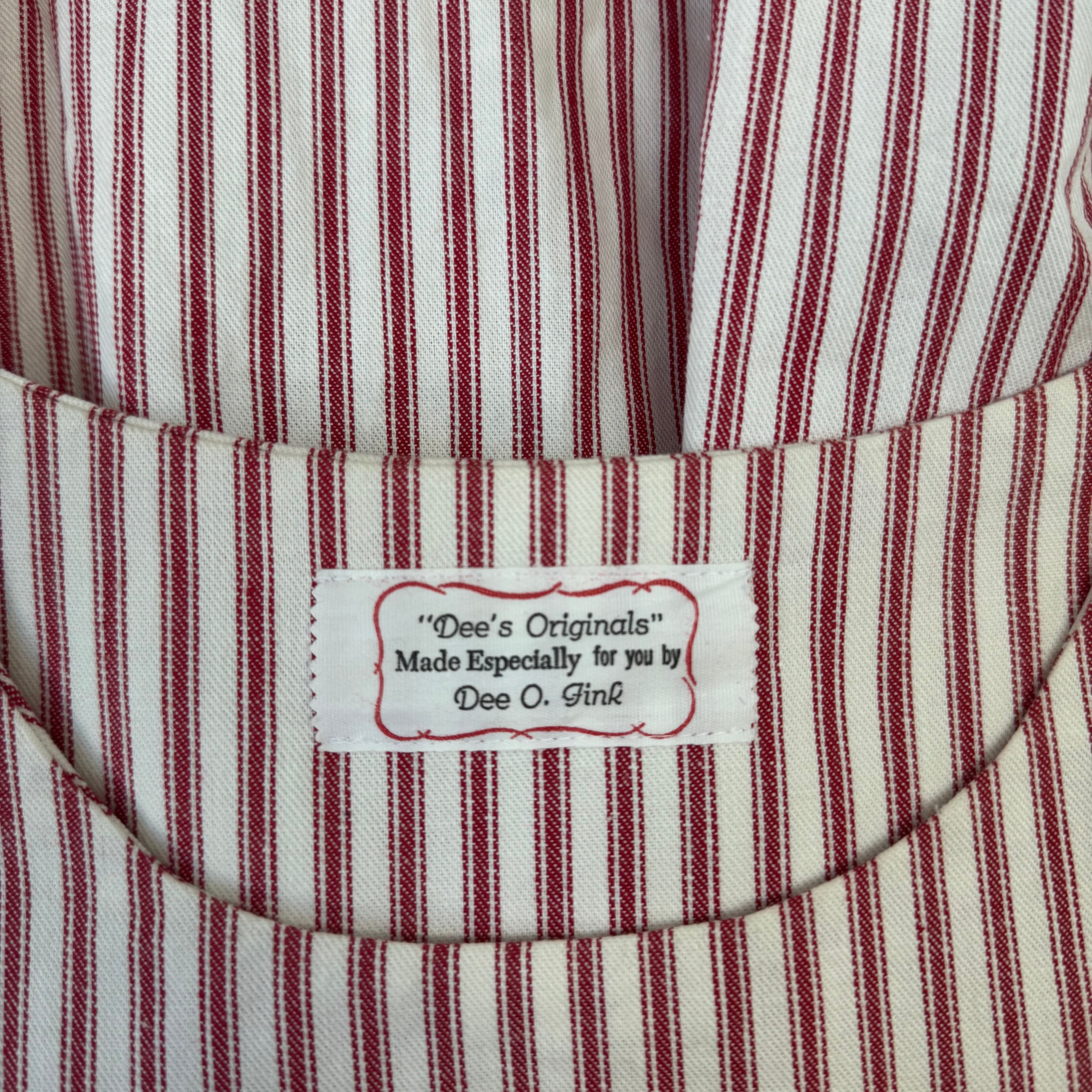 赤×白ストライプの生地にキャッチーなプリントが映える、遊び心たっぷりの一枚です。