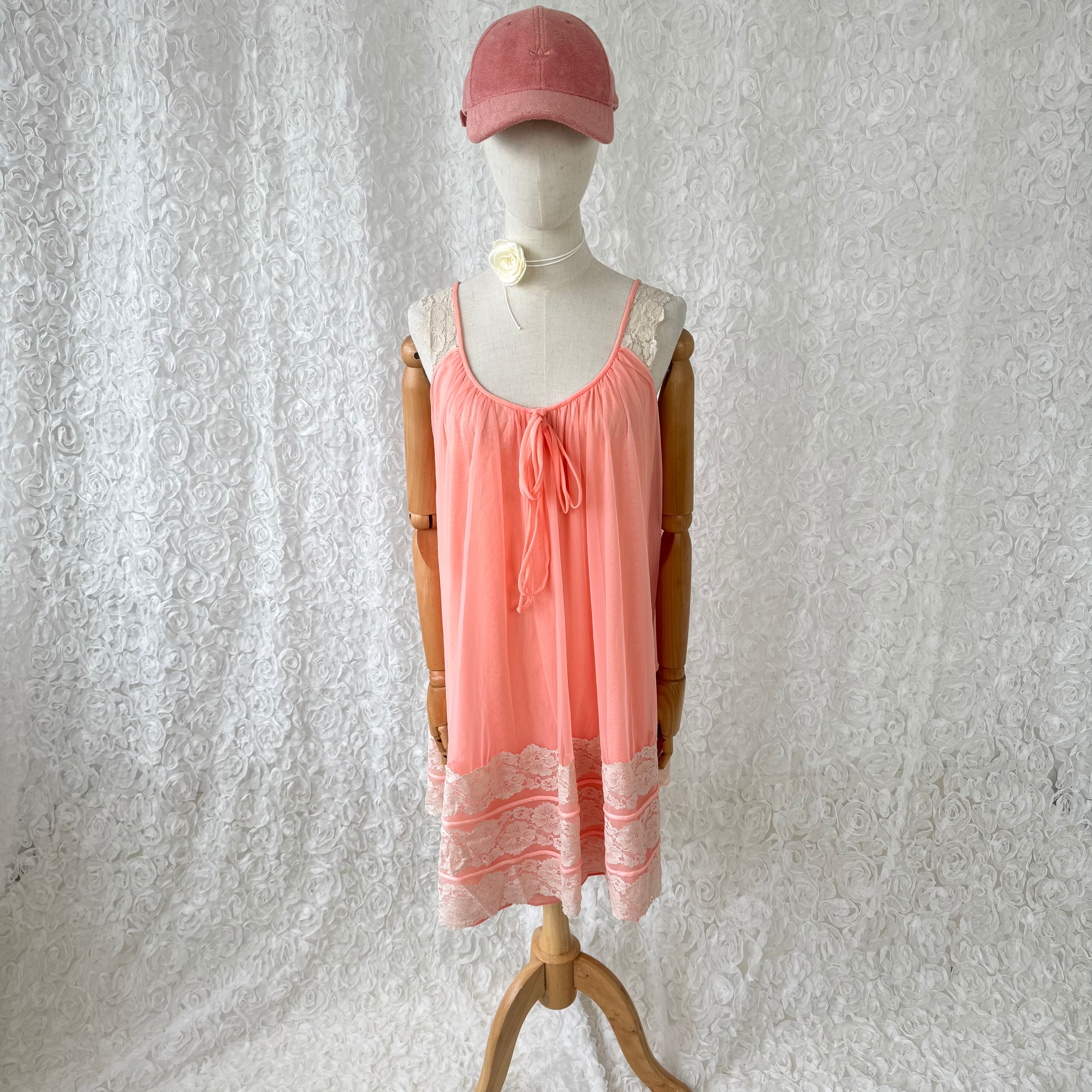 淡いピーチピンクが可憐なヴィンテージランジェリーワンピース。