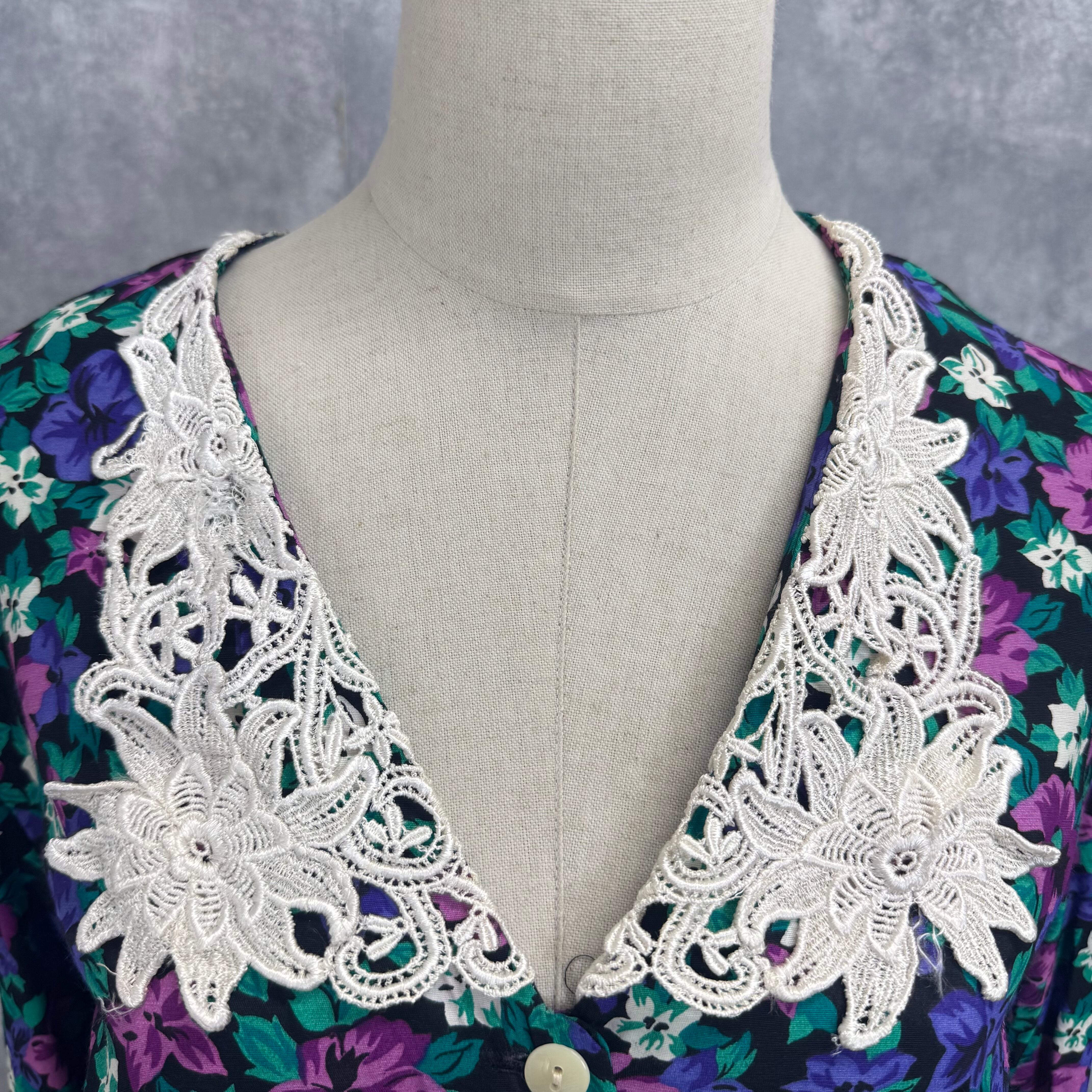 大きなフラワーレースカラーが華やかさを添えるUSAヴィンテージワンピース。