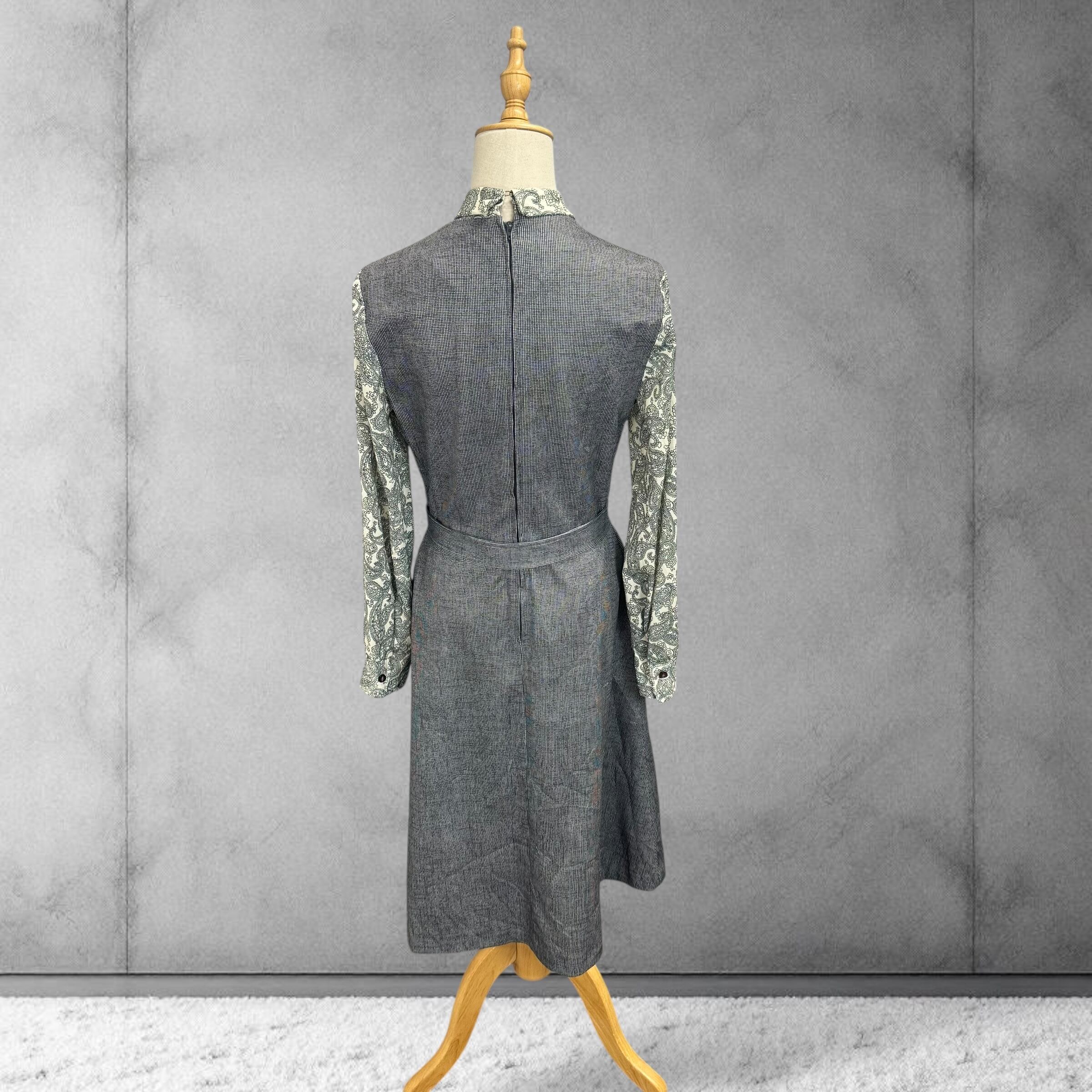 上品なグレーチェックのジャンパースカートがドッキングされたヴィンテージワンピース。