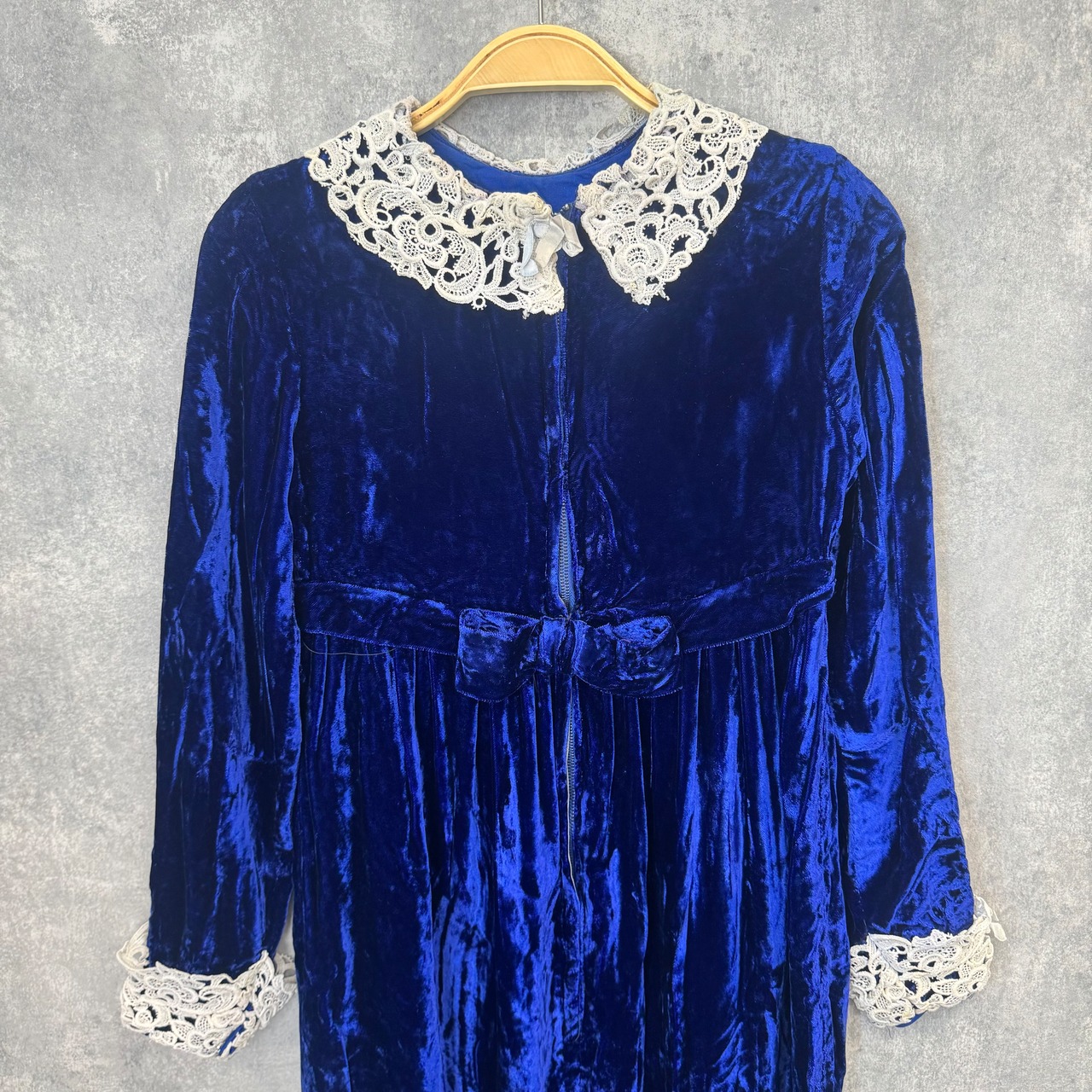 深みのあるロイヤルブルーのベルベットが印象的なヴィンテージワンピース。