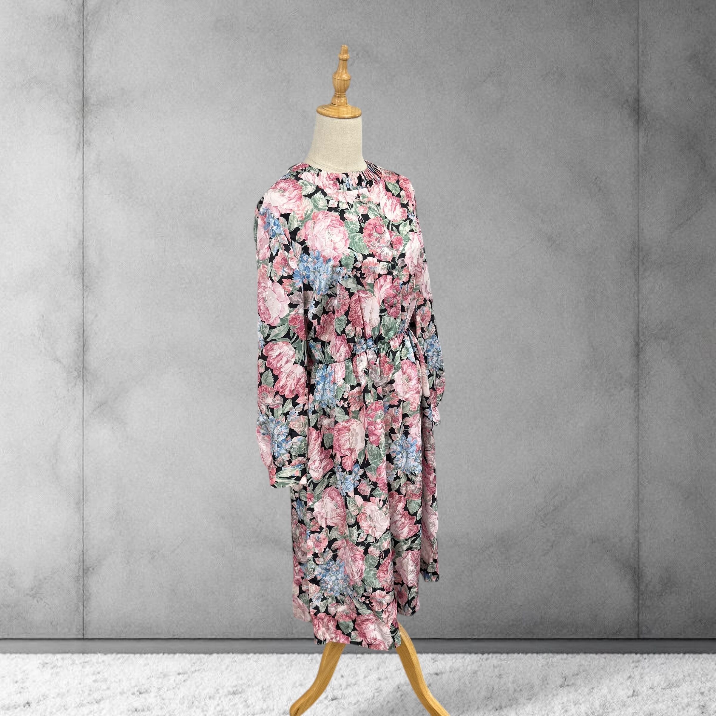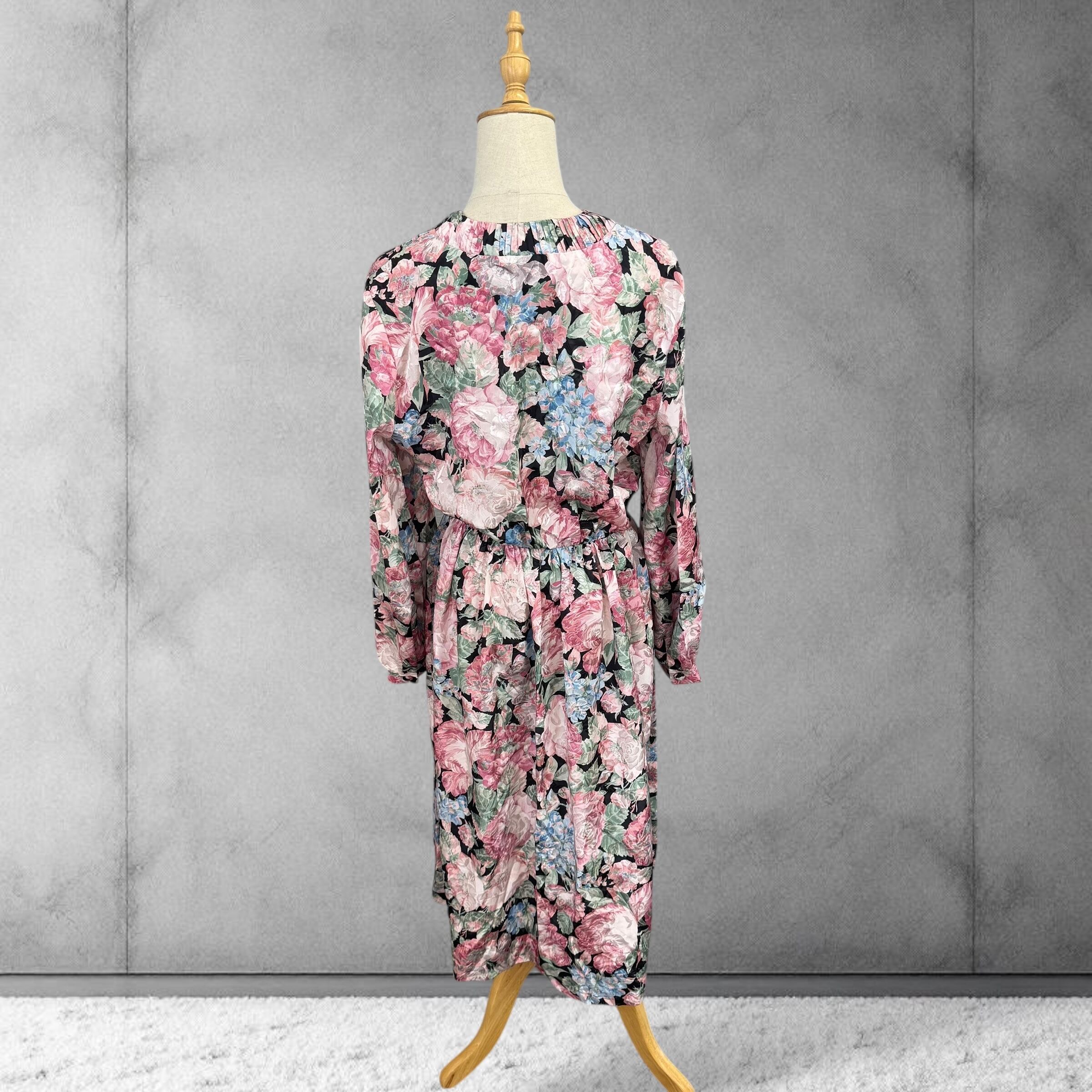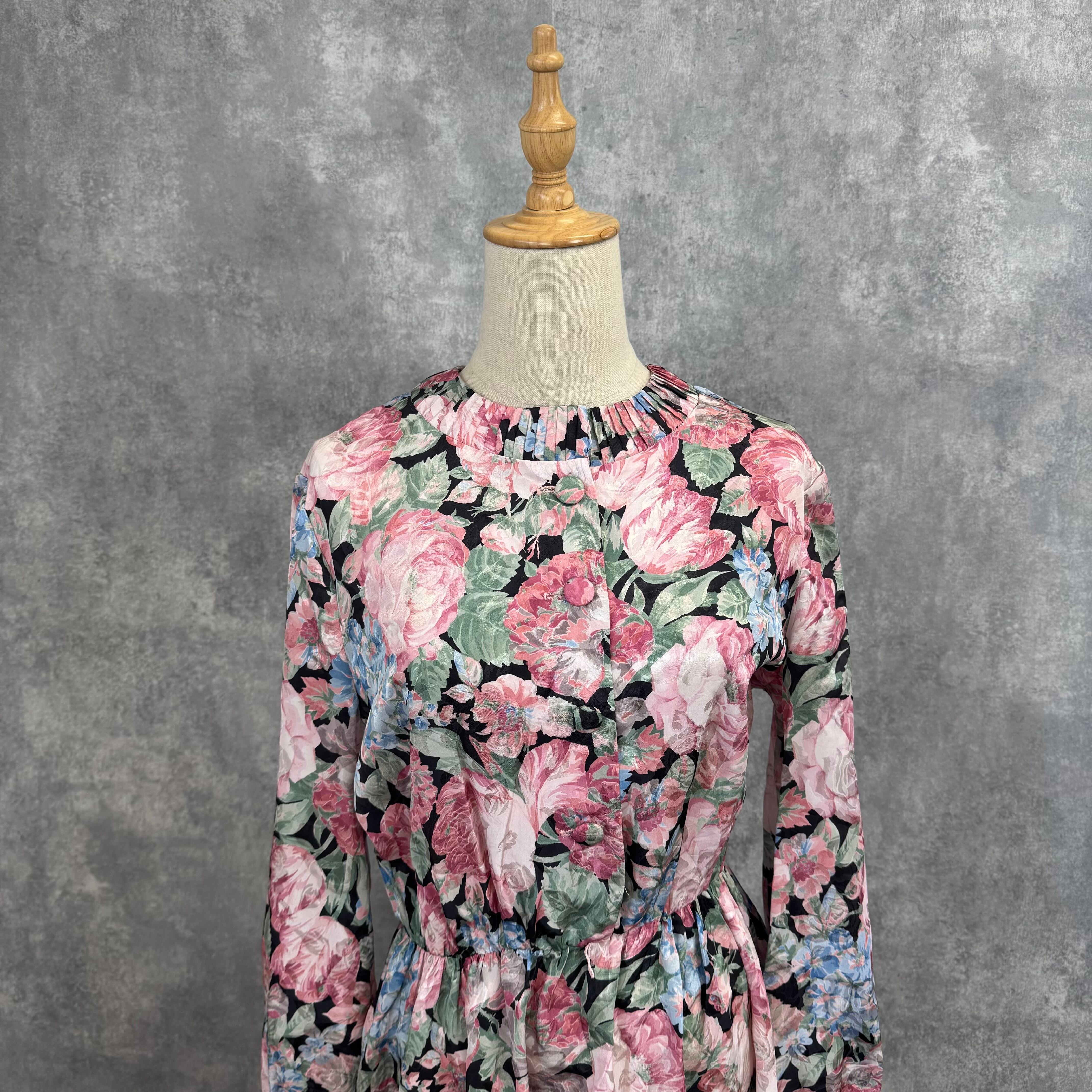 華やかなフラワープリントが一面に広がる、ヴィンテージのロングワンピース。