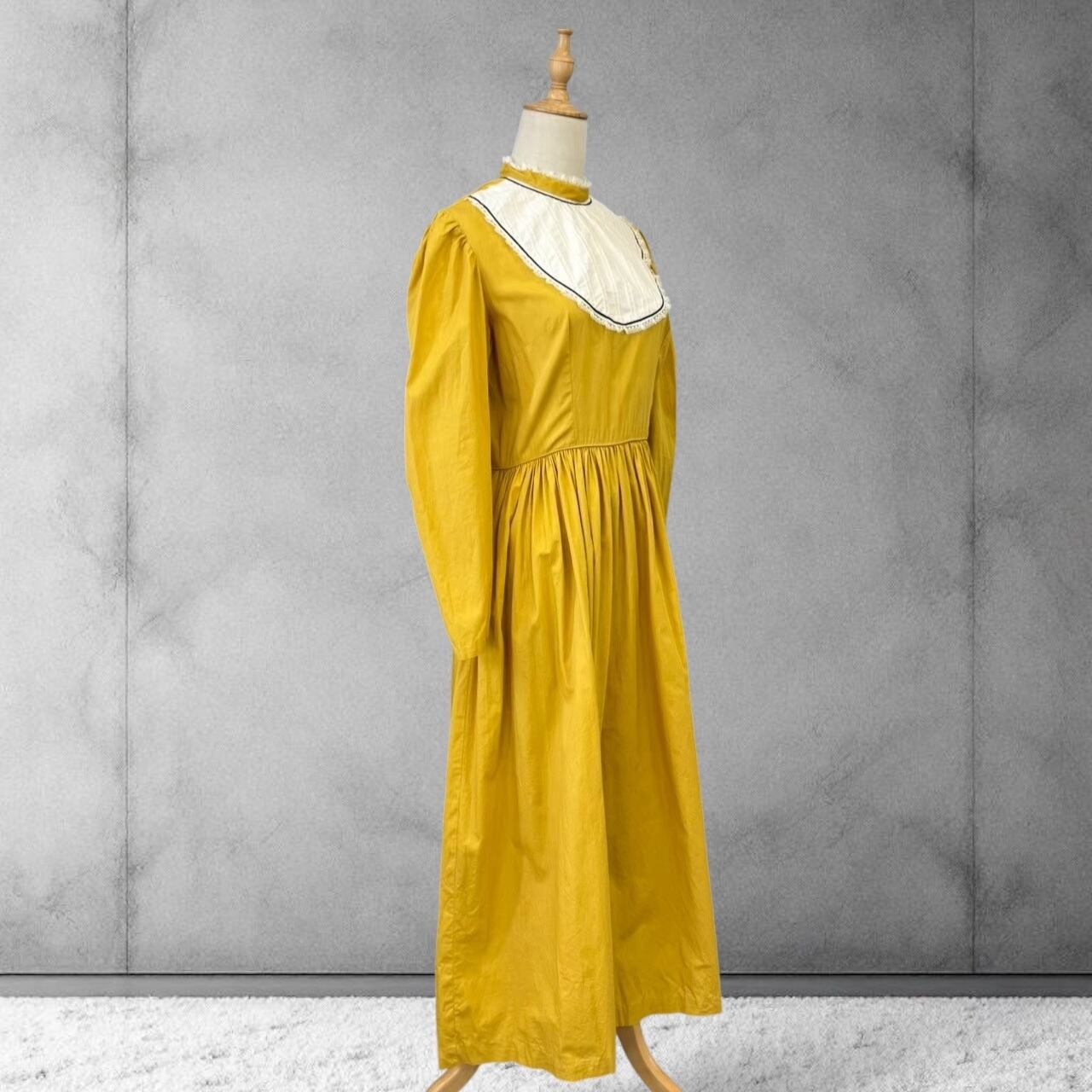 クラシカルで存在感のあるマスタードイエローのロングワンピース。