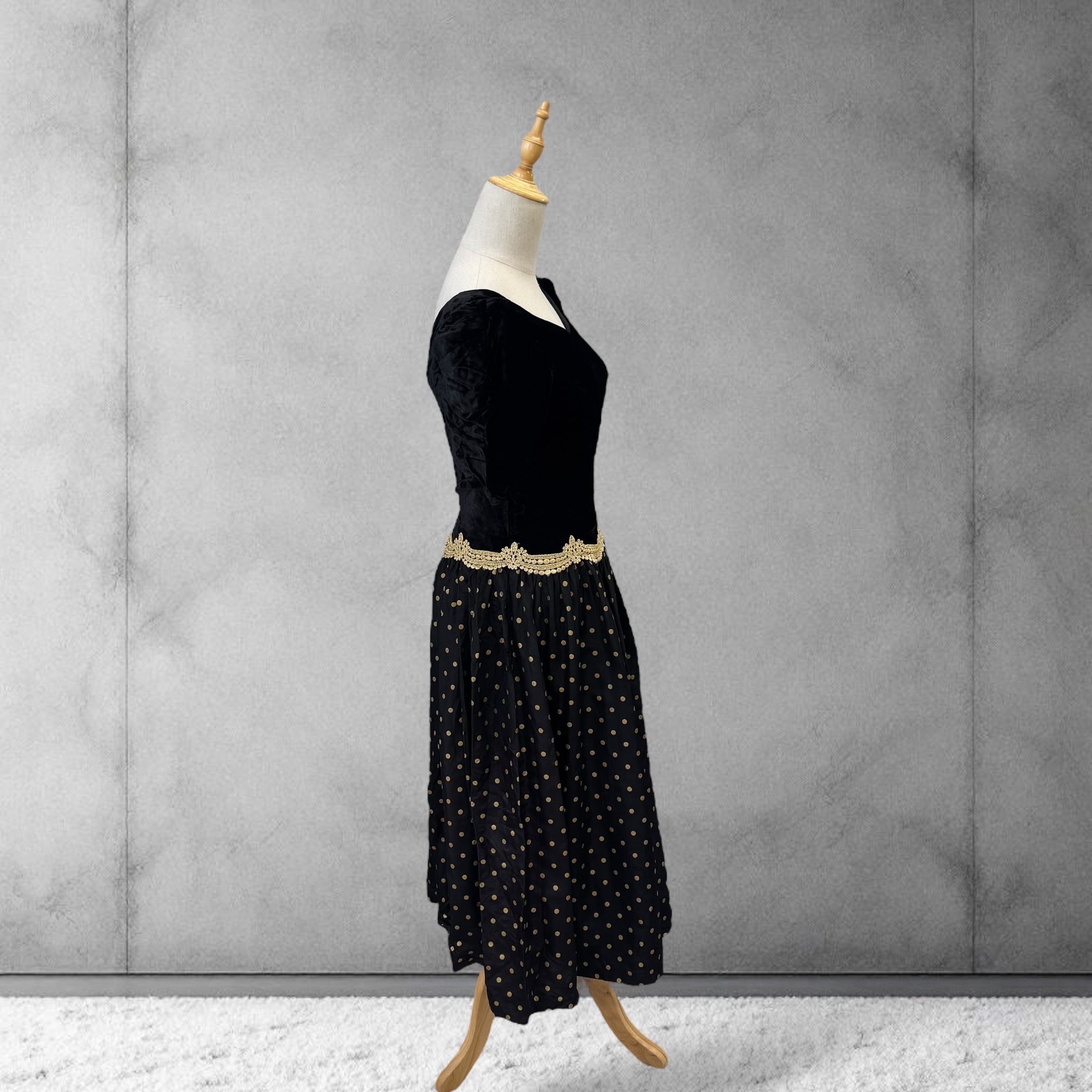 #ヴィンテージワンピース #USAヴィンテージ #ベルベットワンピース #ドット柄ワンピース #monevintage