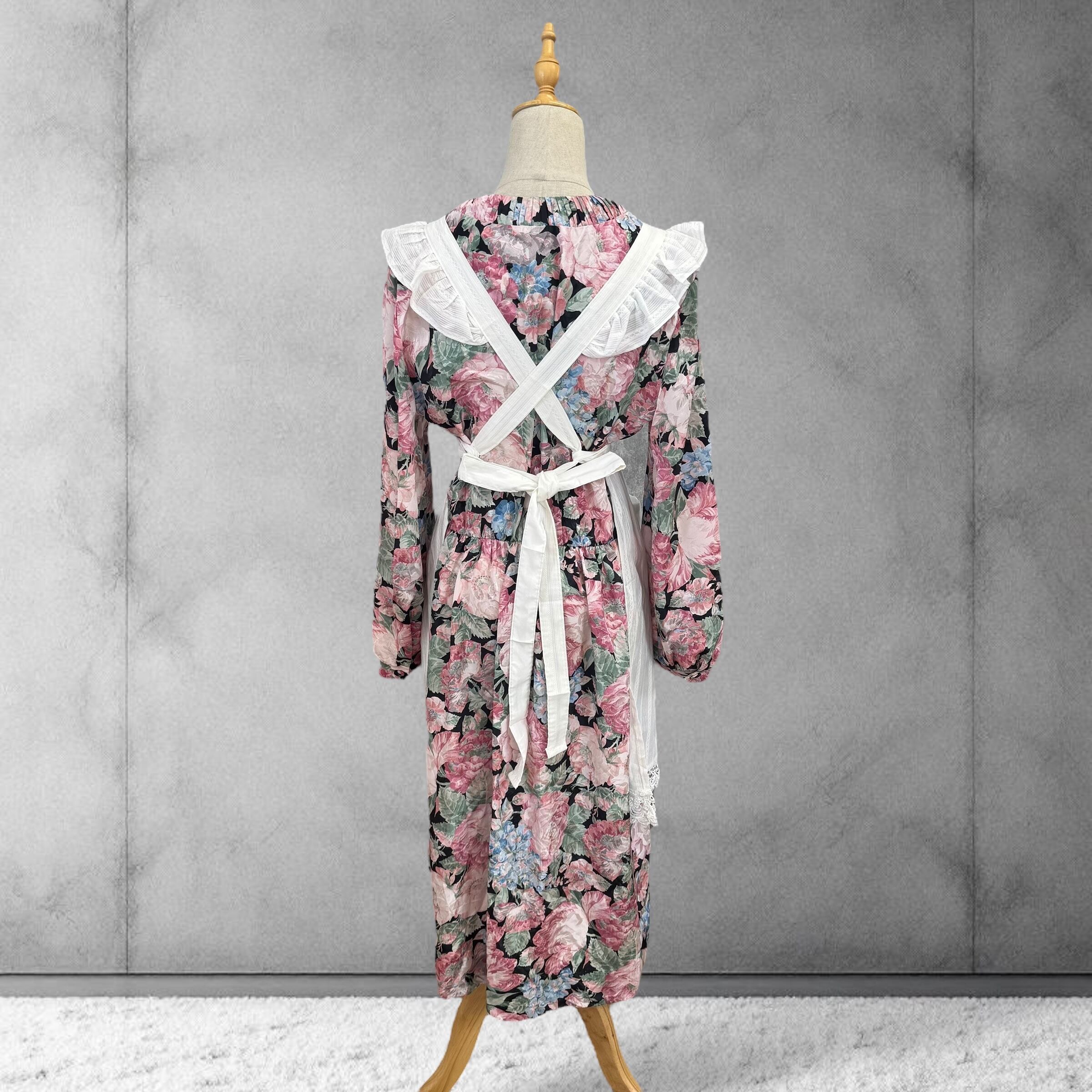 リボン結びでウエスト調整OK、花柄ワンピに重ねるだけで“童話のヒロイン”気分に。