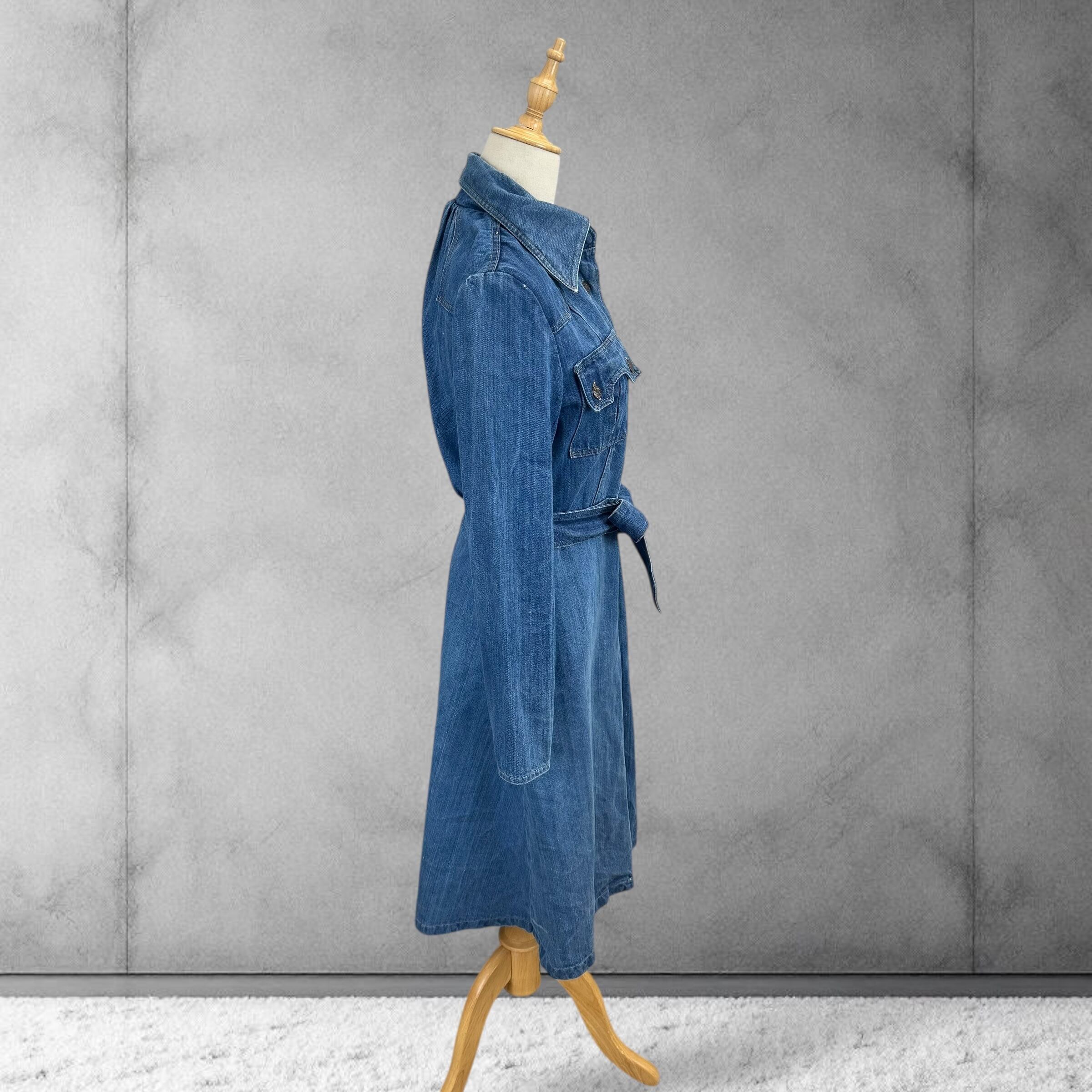 70s風 vintage デニムワンピース レトロスタイル ベルト付き