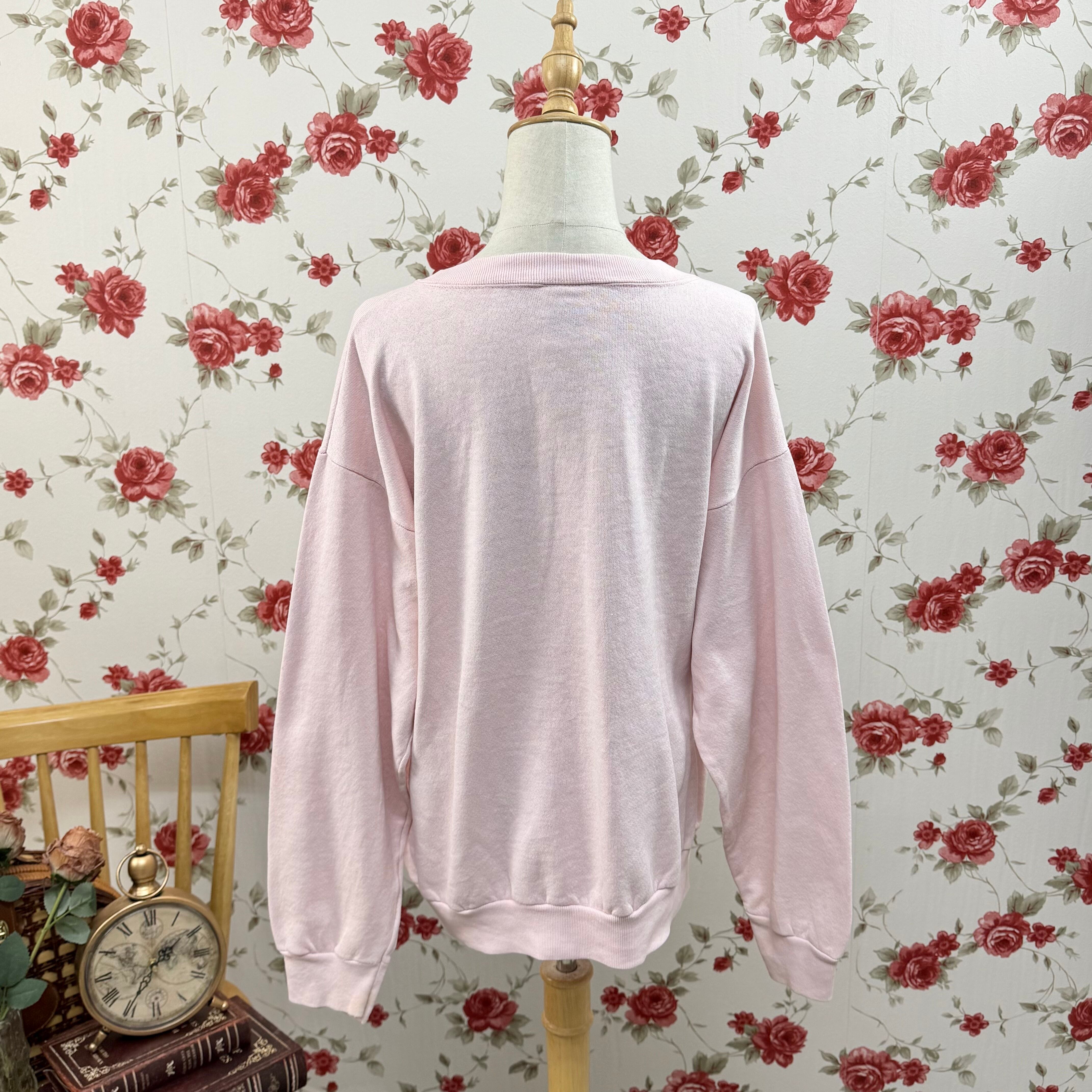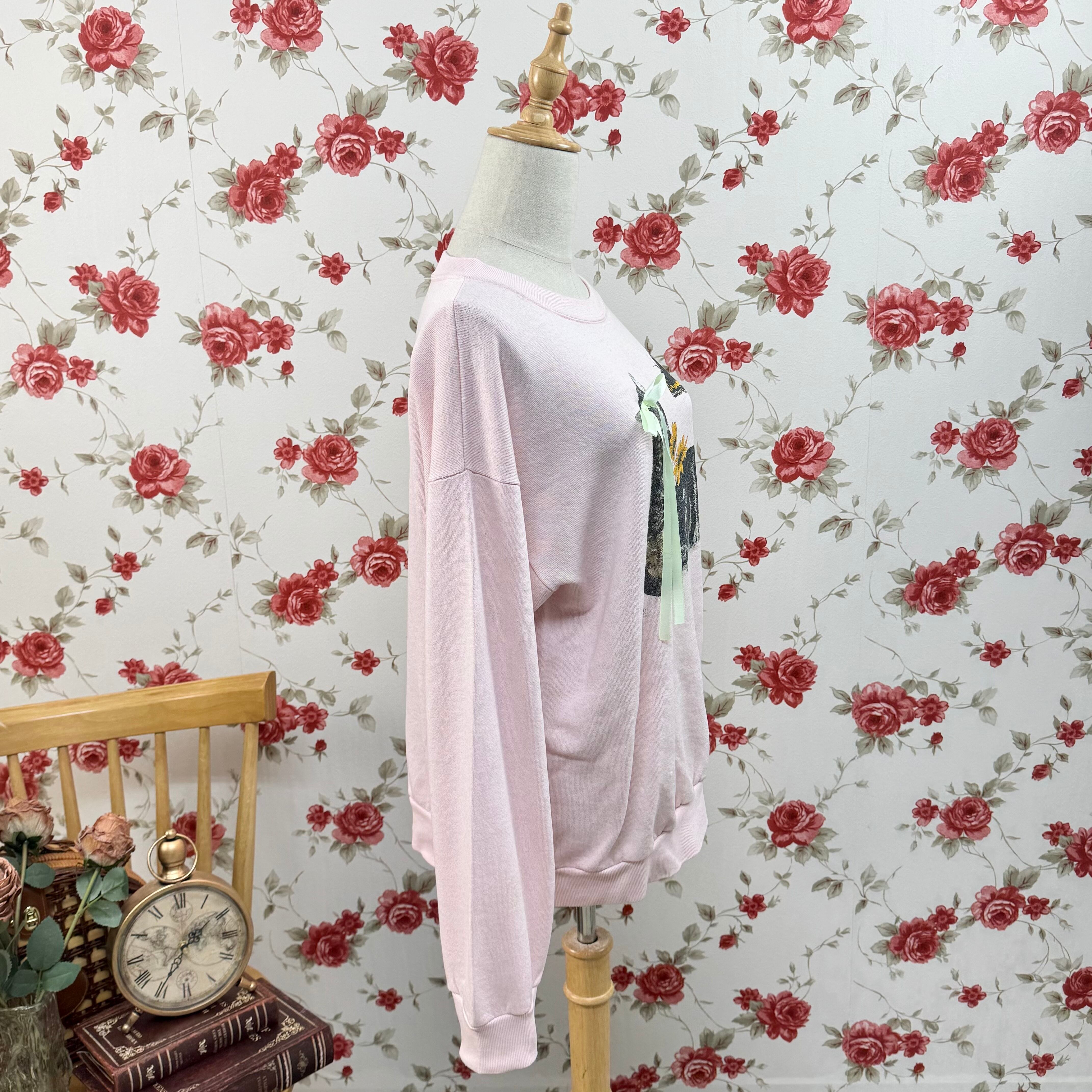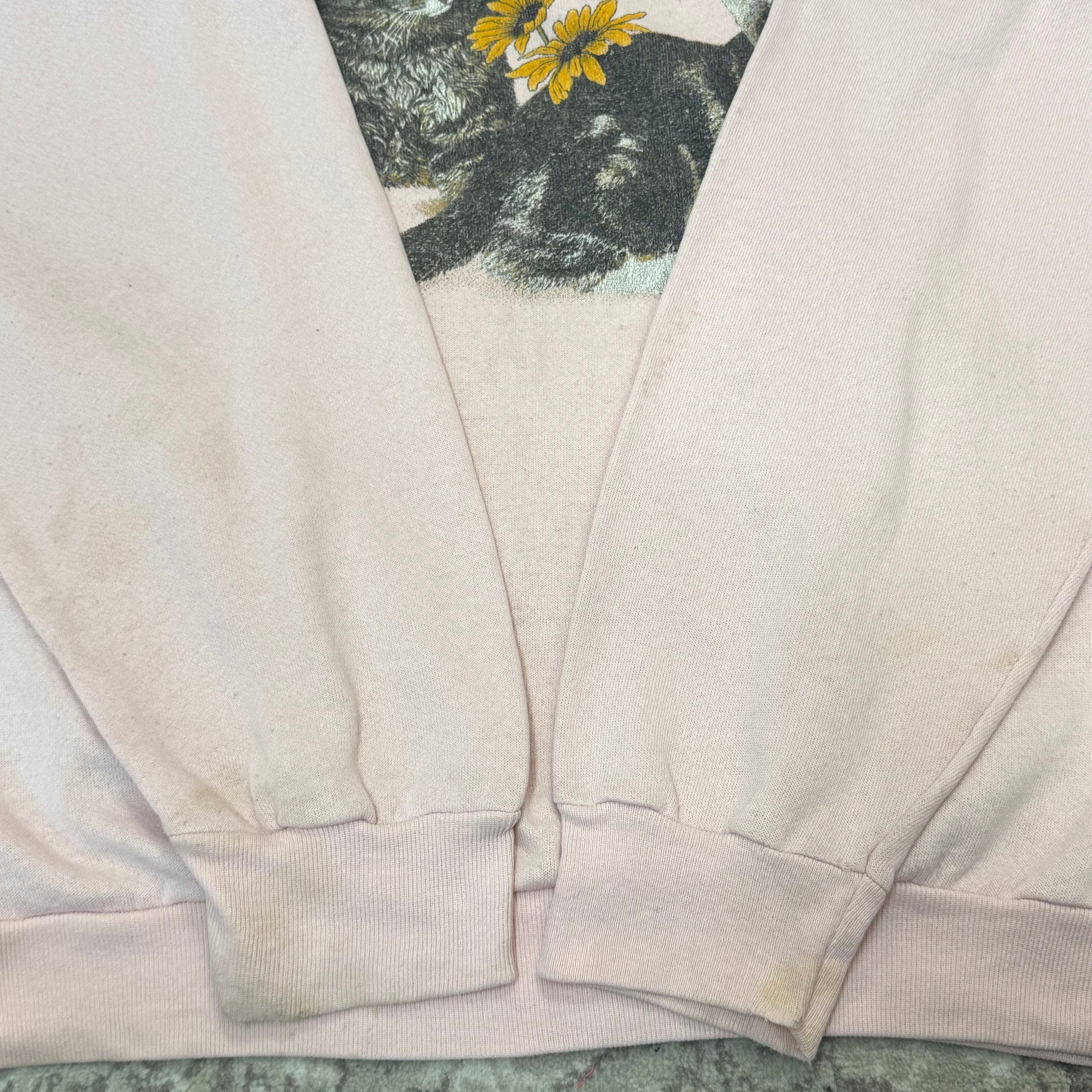 USA製 COTTON GROVE 猫と蝶プリント スウェット ピンク ヴィンテージ ゆるだぼ アニマルデザイン レトロ トレーナー