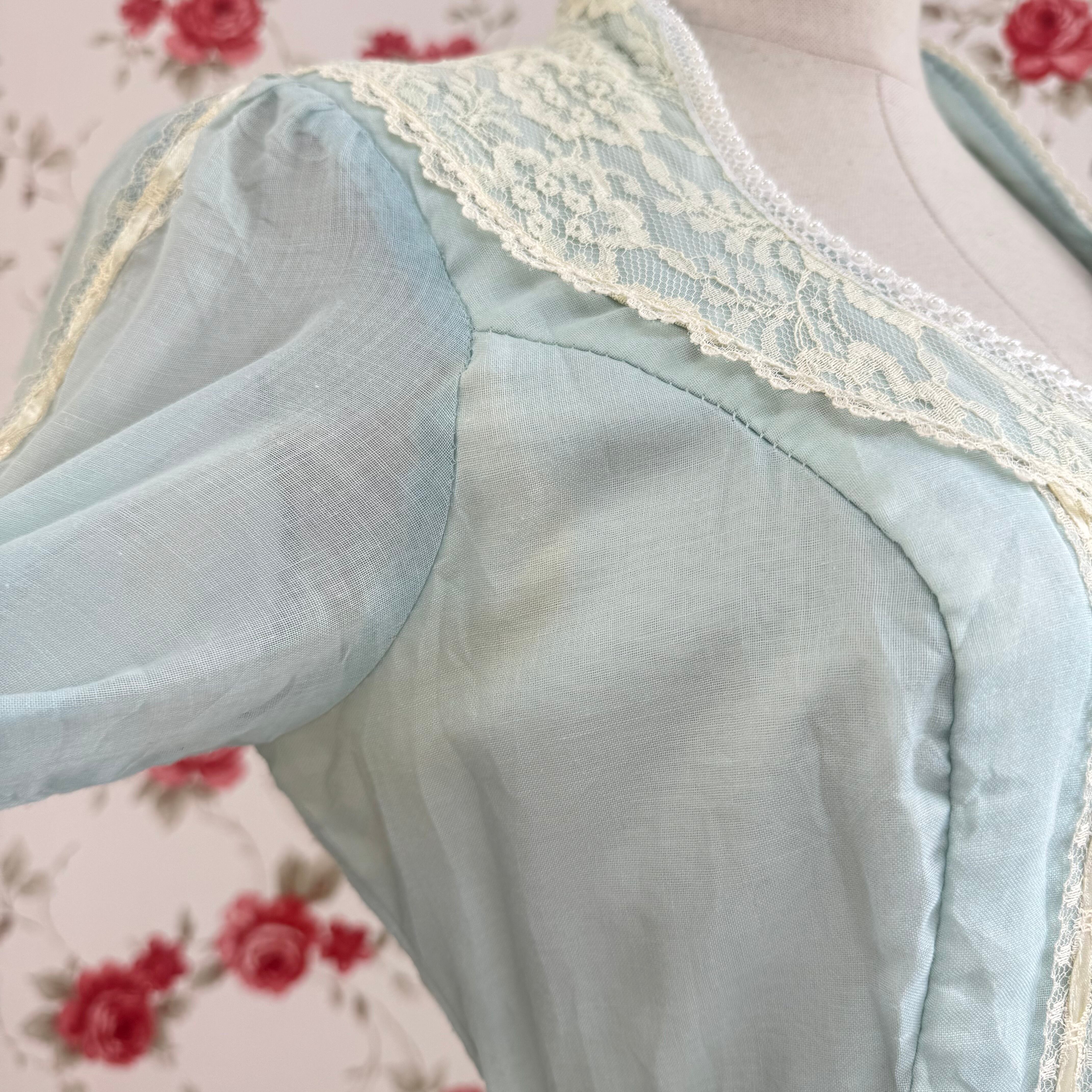 1970年代の希少なvintage USA製 SHAMASK & YOFI レースカラーロングドレス ペールブルー系 ヴィンテージマキシワンピース
