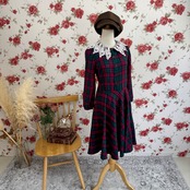 【ヴィンテージ】レース襟チェックワンピース クラシカルガーリードレス