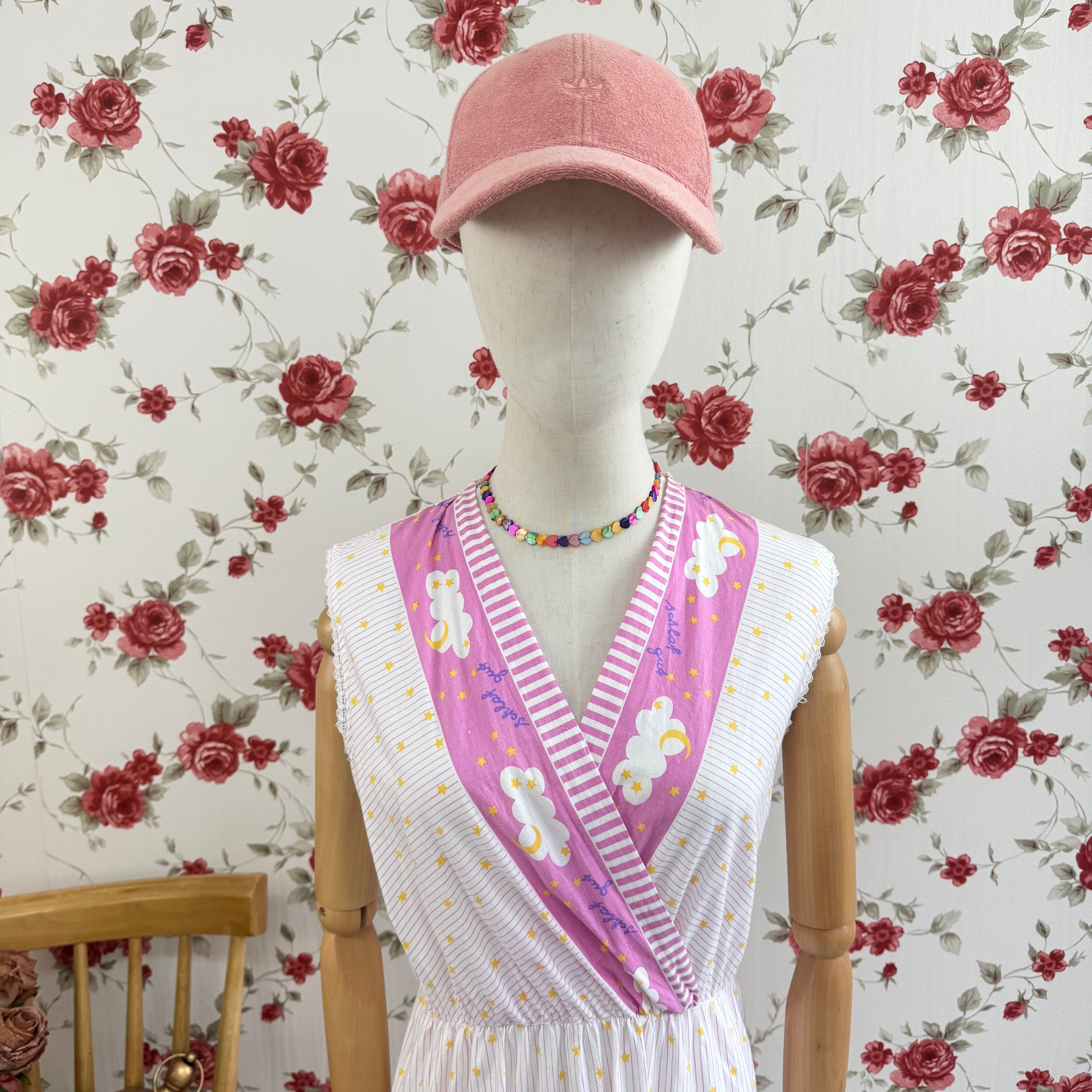 ドイツ製 星柄 ピンク コットン ノースリーブ ワンピース レトロガーリー ルームウェア ヴィンテージドレス