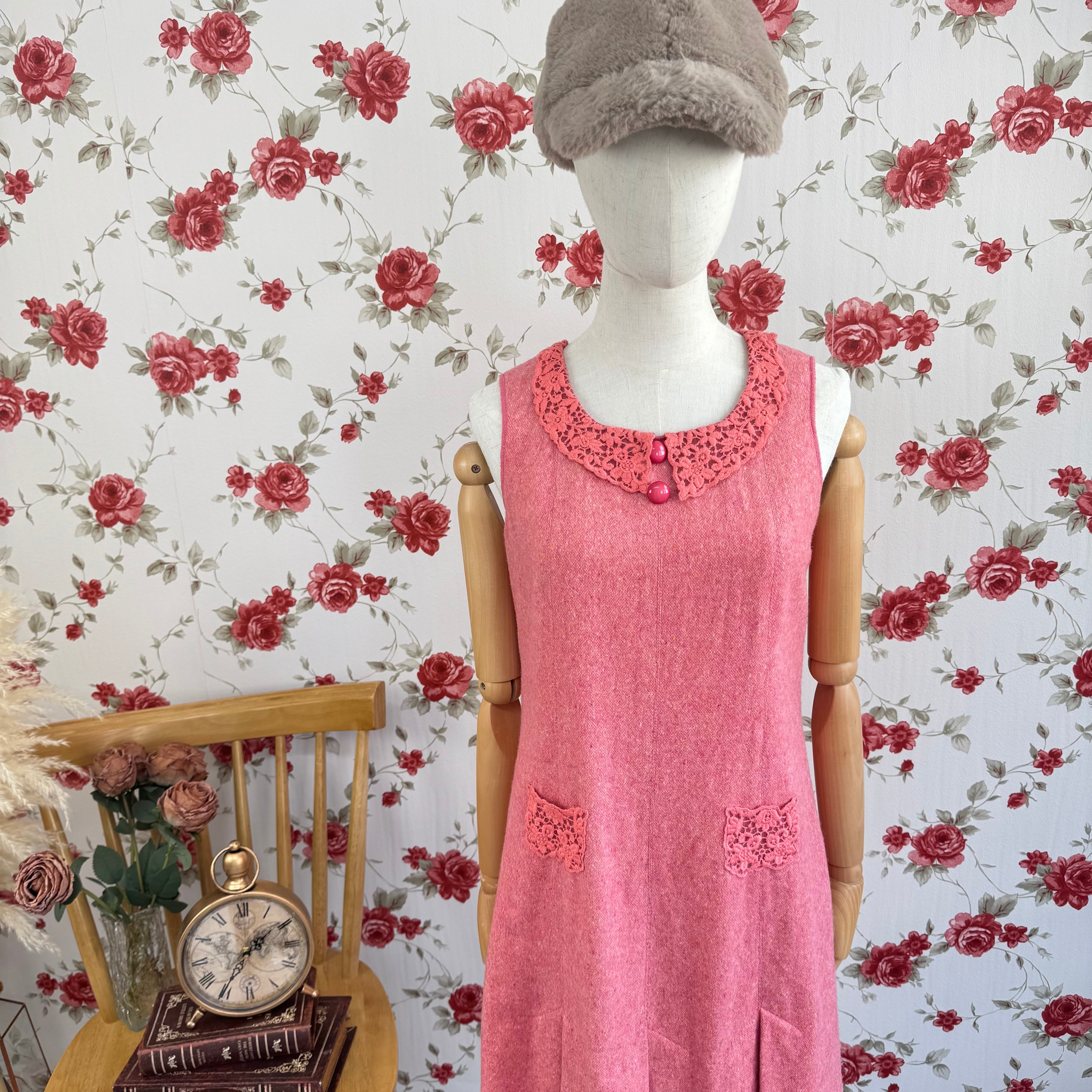 レース襟とくるみボタンが華やかに映えるクラシカルなワンピース。