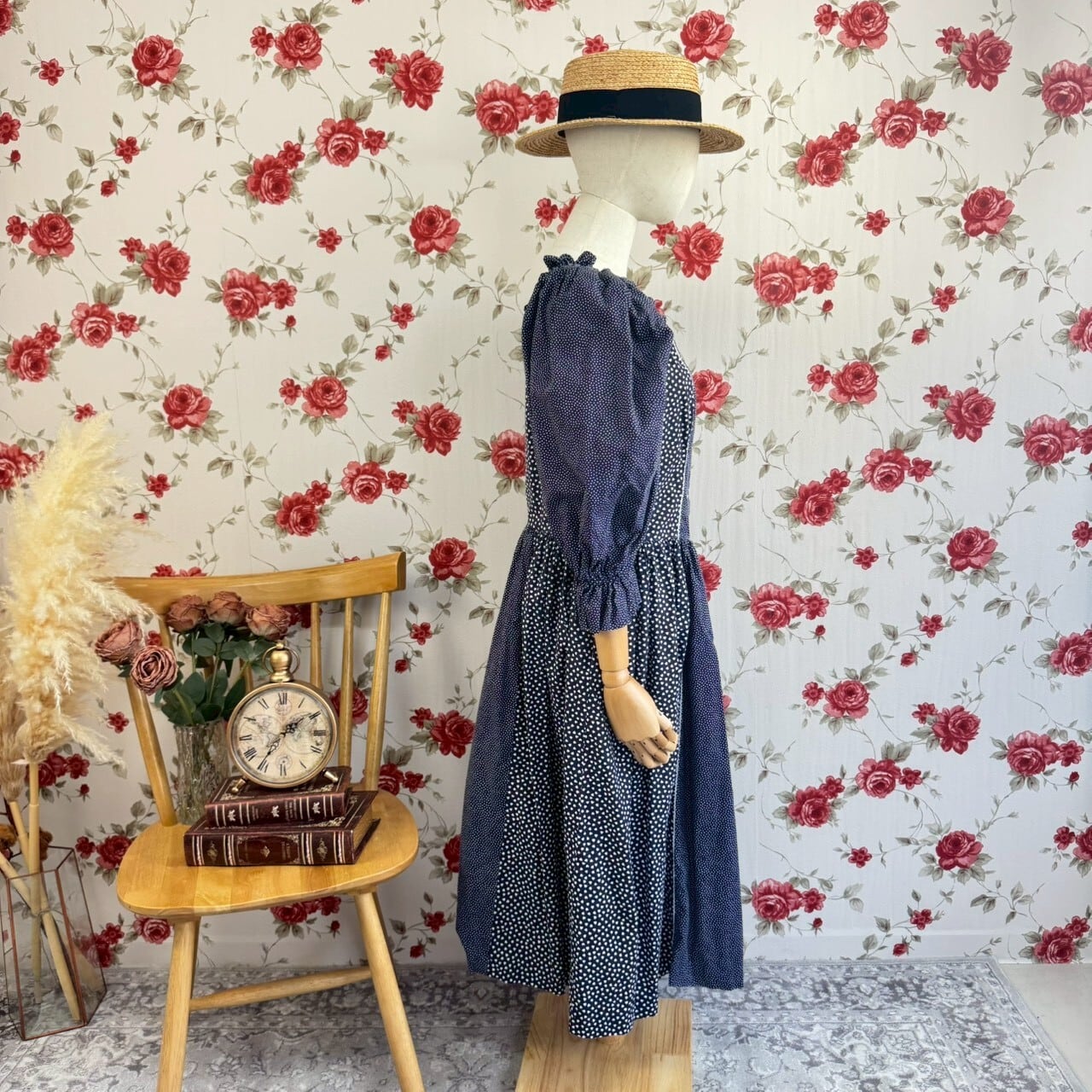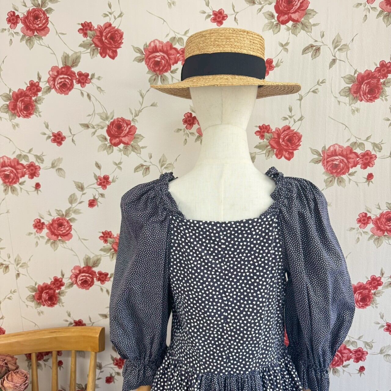 肩にボリュームを持たせたパフスリーブが、クラシカルな美しさを演出するヴィンテージワンピースです。