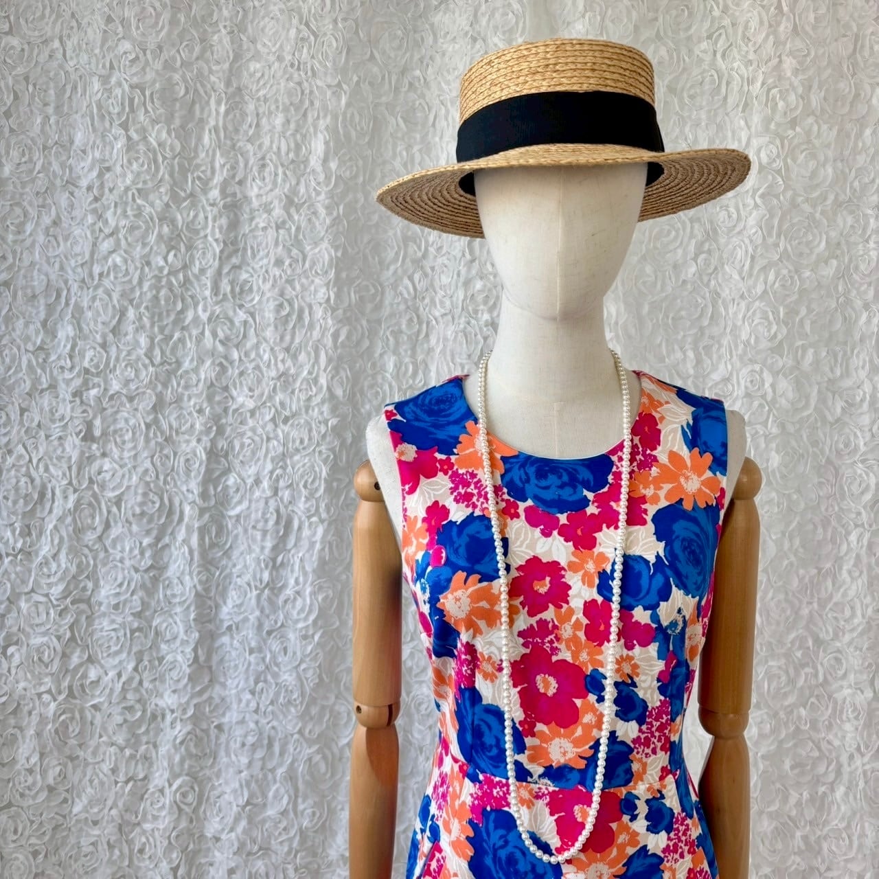 鮮やかなピンク×ブルーのフラワープリントが目を惹く、LANDS’ END(ランズエンド)のワンピース。