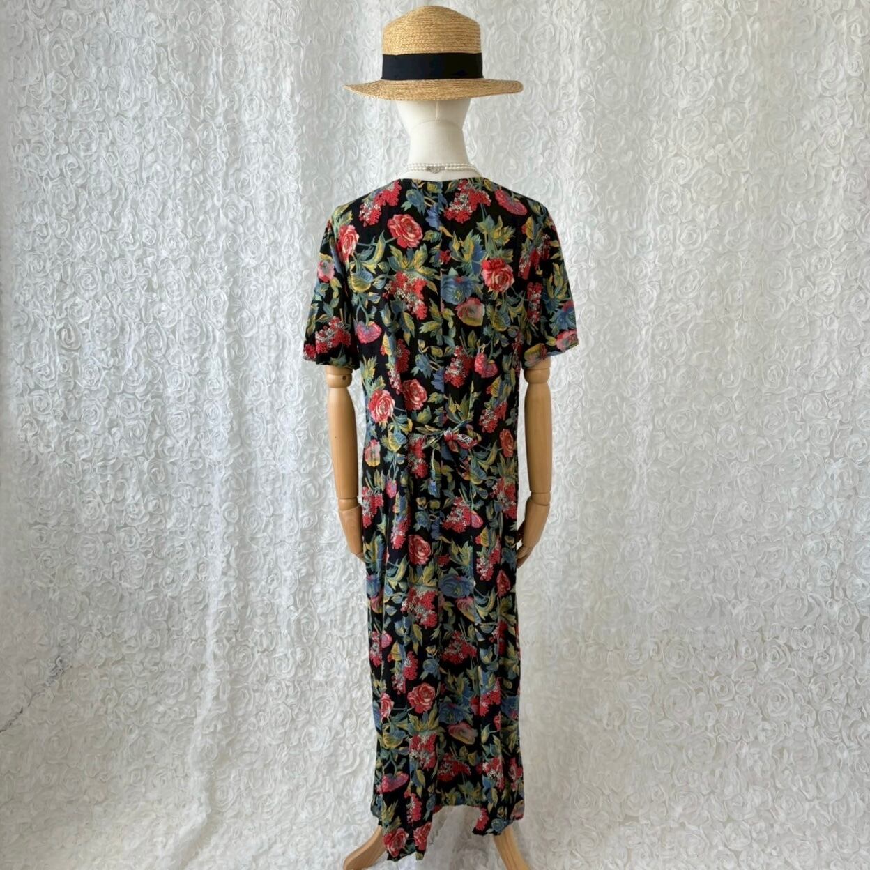 華やかなレトロフラワー柄が目を惹くロングワンピース。